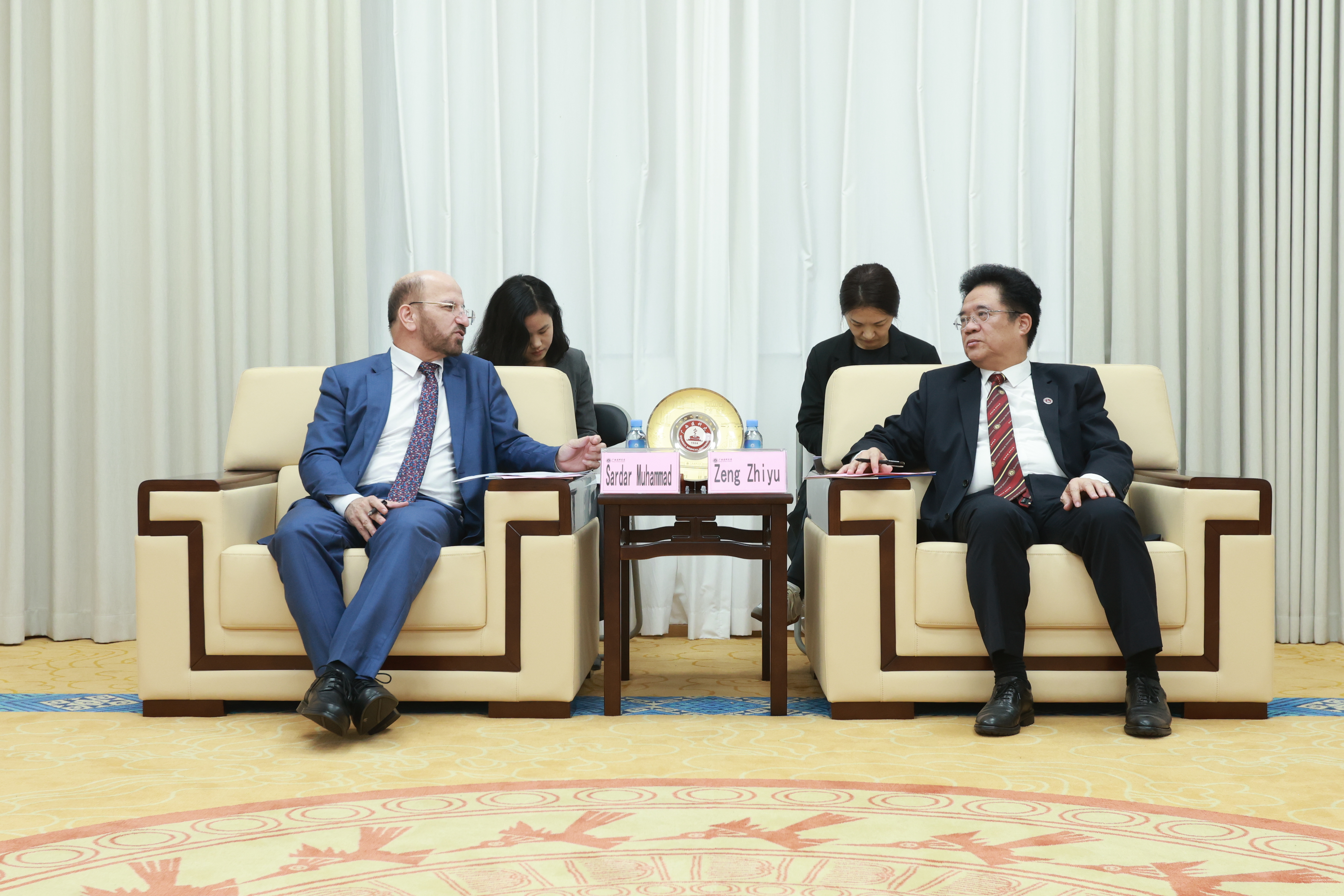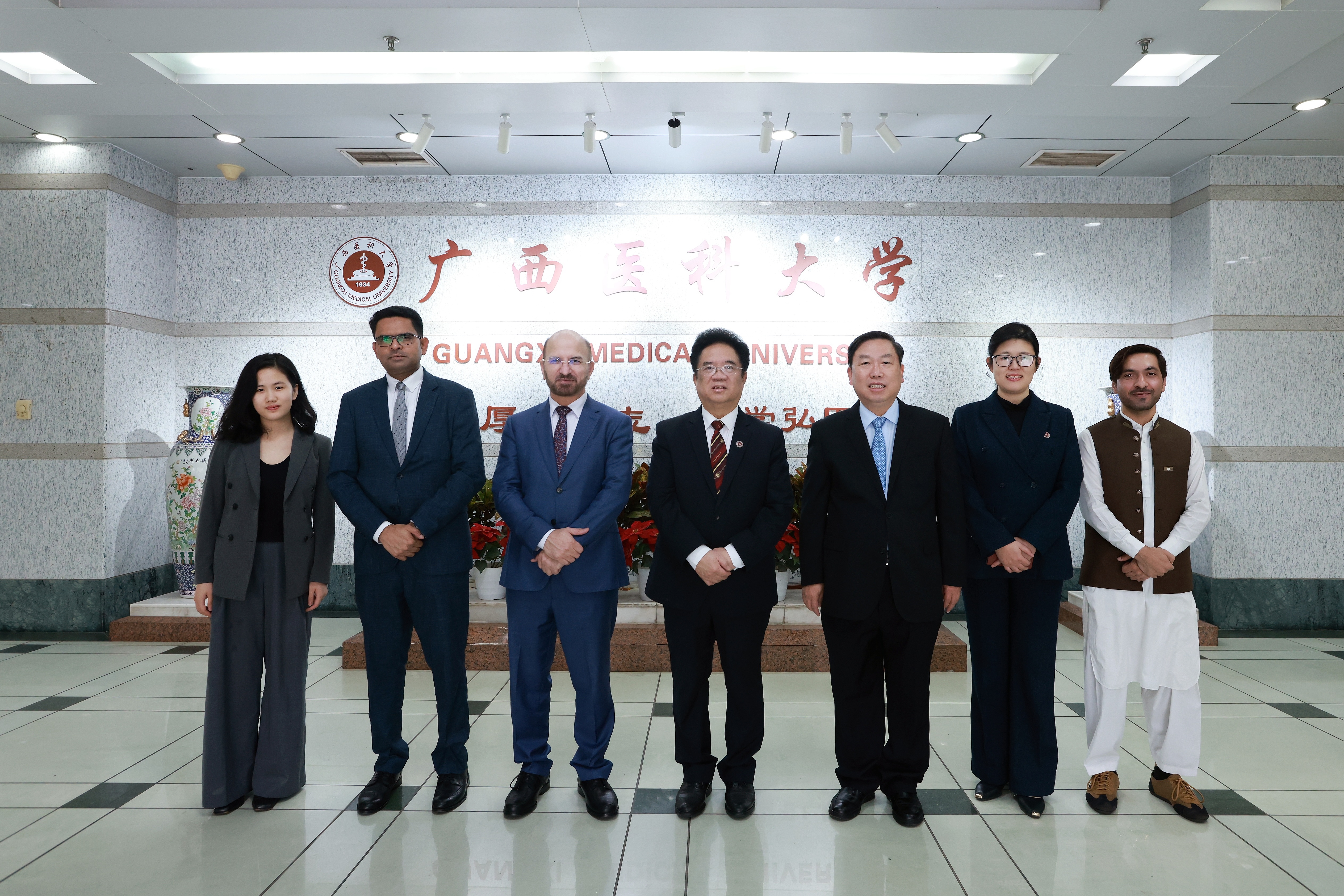 座谈会上,曾志羽对萨达尔・穆罕默德一行的到访表示热烈欢迎。他指出,今年是中巴建交74周年,两国全天候战略合作伙伴关系为双方深化各领域合作奠定了坚实基础。曾志羽介绍,广西医科大学办学91年来,已建立起覆盖本科、硕士、博士的完整人才培养体系,是中国面向“一带一路”沿线国家开展医学教育与医疗卫生合作的重要平台。他期待与巴基斯坦在医学人才培养、医疗服务等领域进一步深化合作。