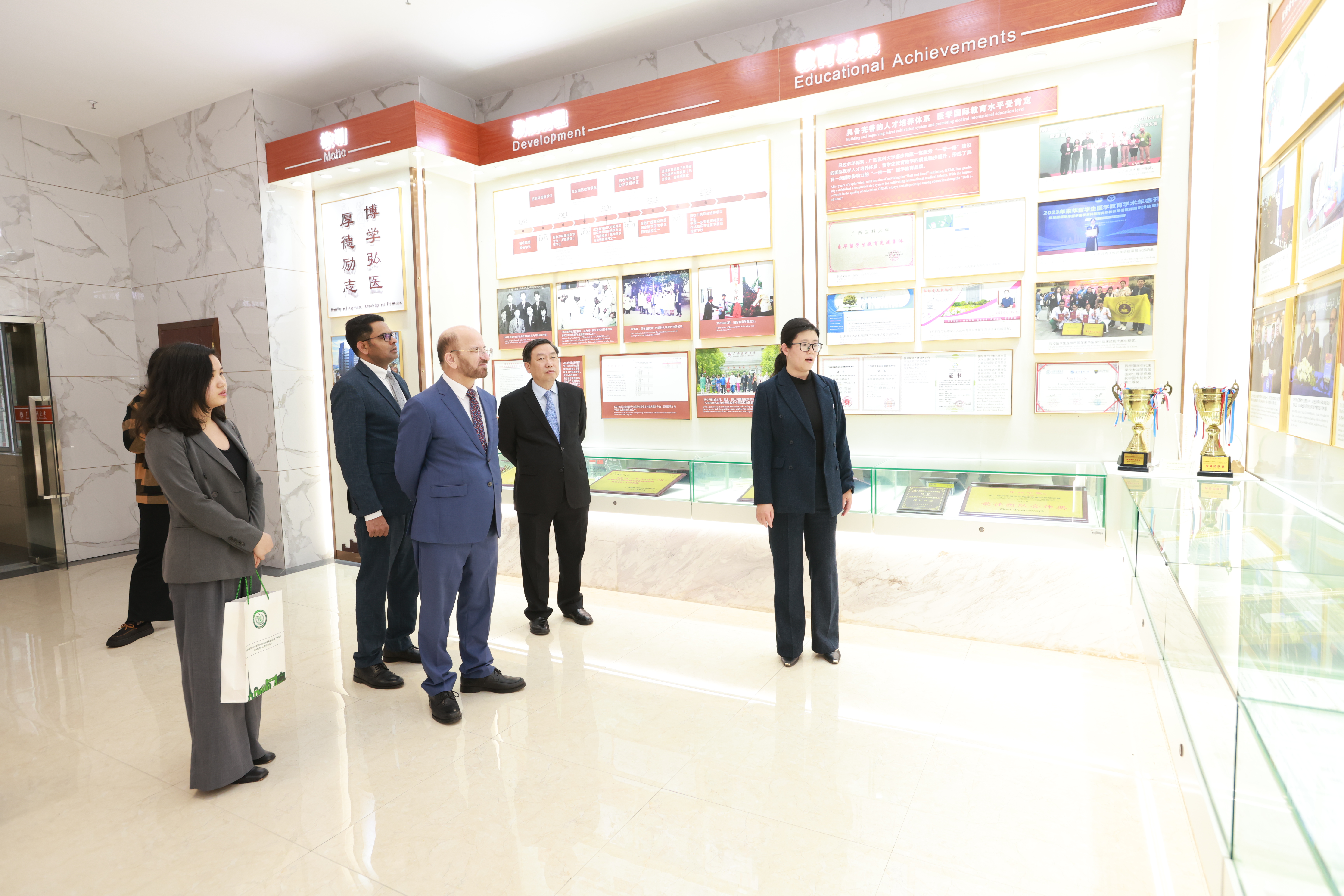 座谈会后,总领事一行参观了国际教育学院,并与在校巴基斯坦学生进行了会面座谈,鼓励他们珍惜求学机会,努力成才,为两国友好与医疗卫生事业发展贡献力量。