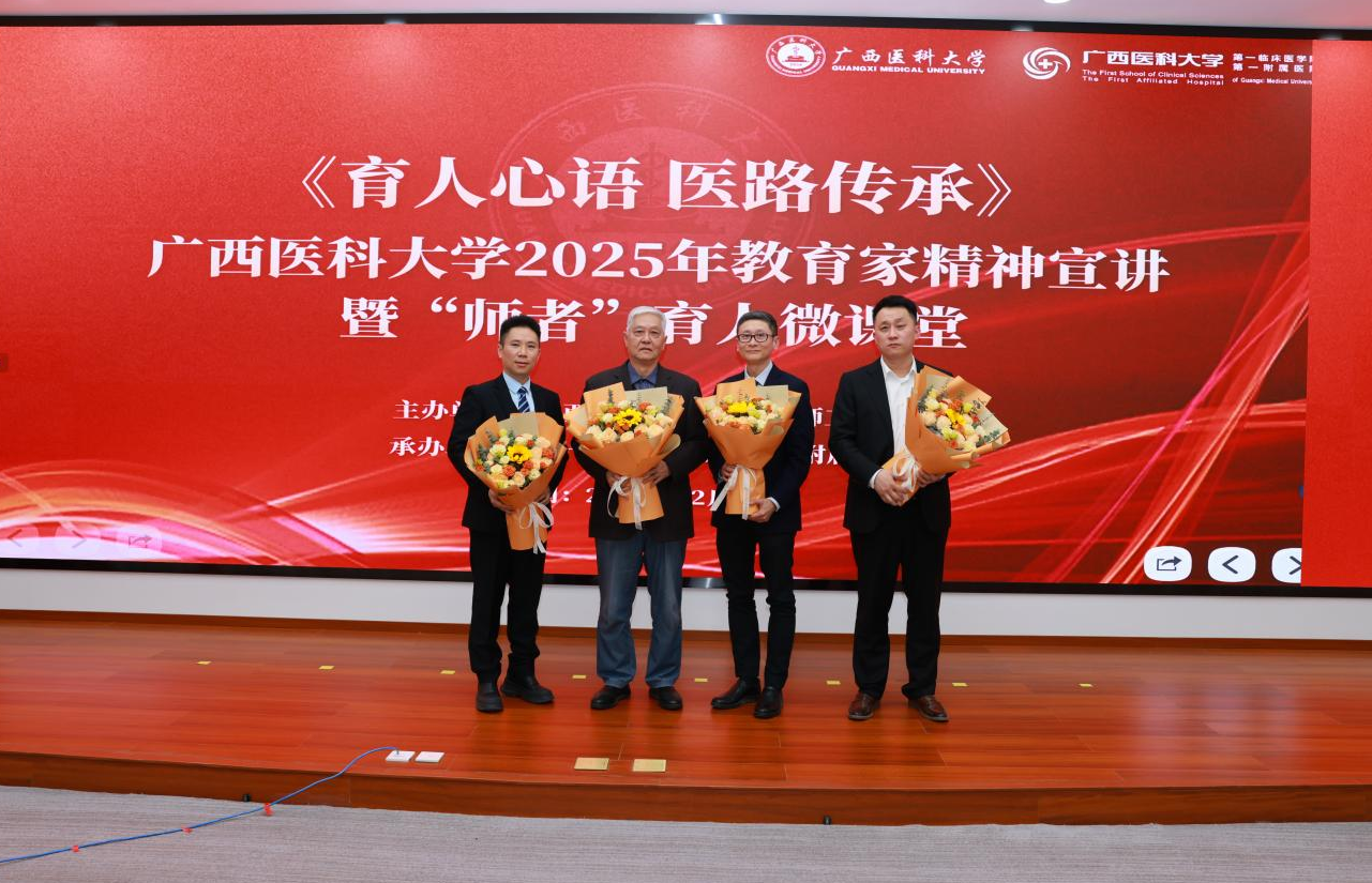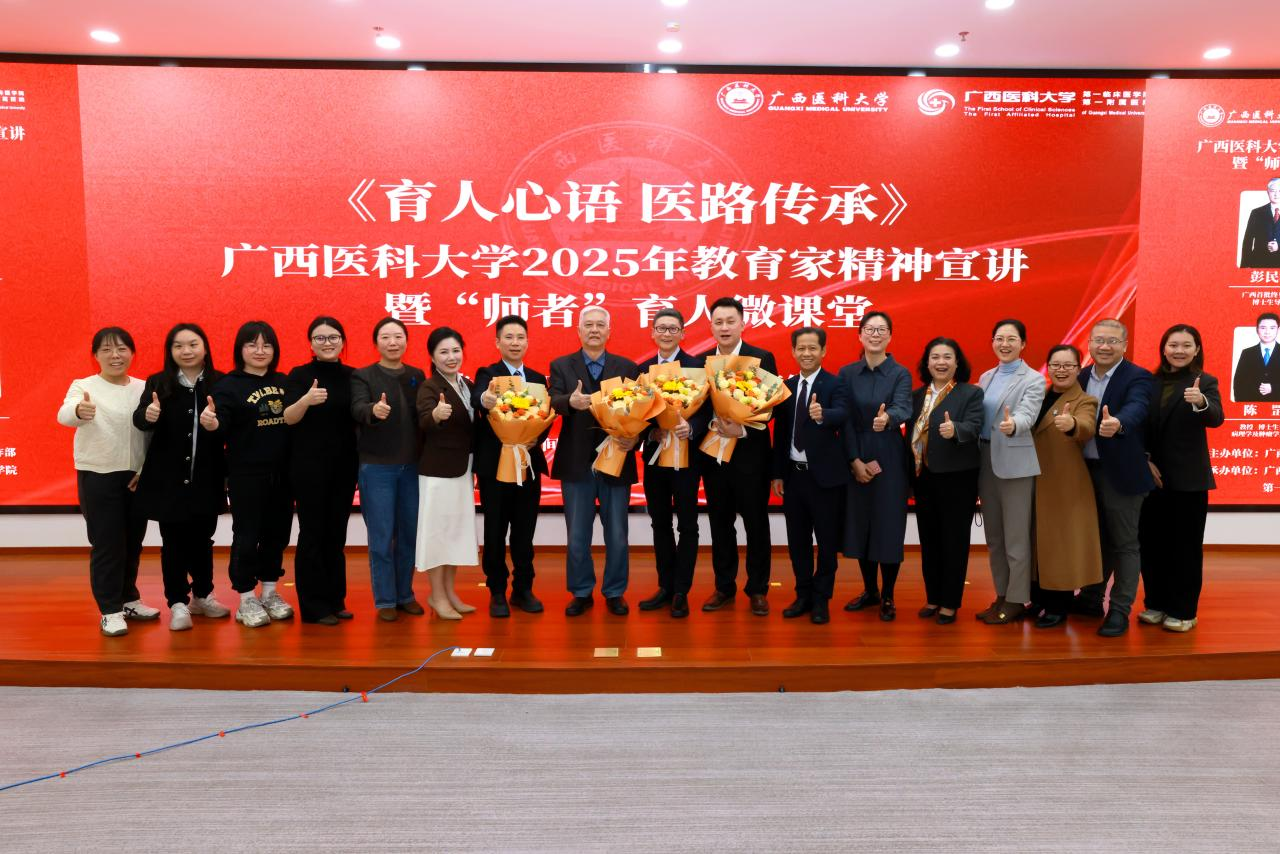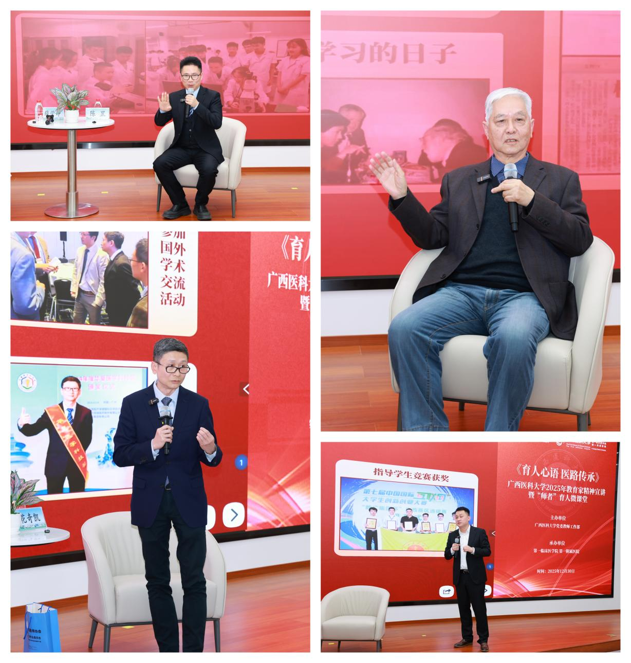 12月30日下午,由学校党委教师工作部主办,第一临床医学院、第一附属医院承办的2025年教育家精神宣讲暨第二期“师者”育人微课堂活动,在第一附属医院中国—东盟医疗保健合作中心(广西)5楼大学术厅顺利举行。本次活动以“育人心语 医路传承”为主题,特邀第一附属医院彭民浩、花奇凯、陈罡、彭鹏四位榜样教师作交流分享,共同探讨教育家精神的时代内涵。