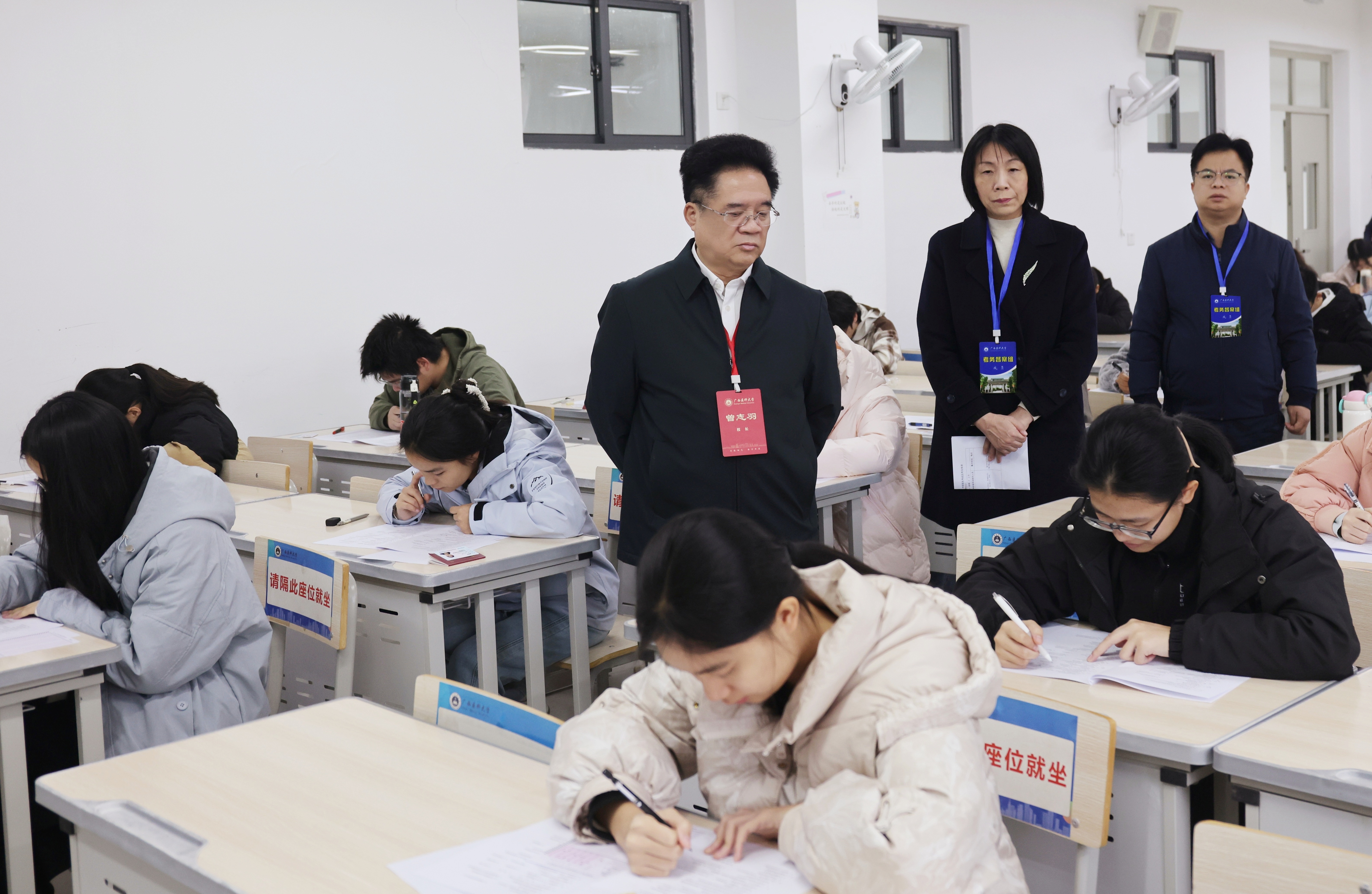 为深入贯彻落实学校2025年度教育教学工作会议精神,落实“教学中心、以本为本、课比天大”的教育教学理念,切实加强考试管理,确保考试工作平稳有序,学校党委书记陈川、校长曾志羽等校领导深入各校区考场开展巡视检查,全面检查考试组织、考场秩序、考风考纪等情况。校教学督导专家、教评中心、教务处、学工处等相关职能部门、各学院负责人参加巡考。