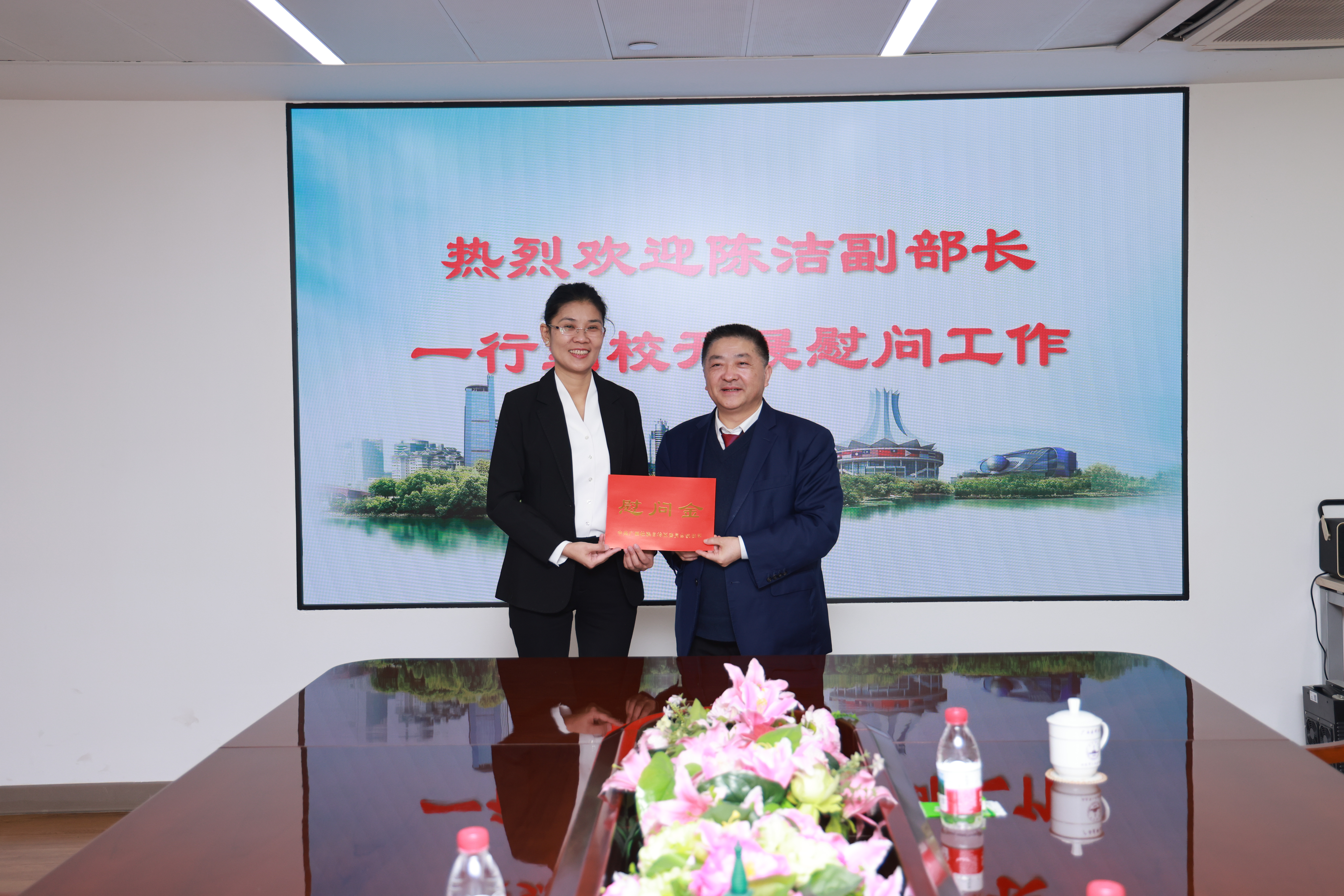 2月11日下午,在新春佳节到来之际,自治区党委统战部副部长陈洁一行莅临我校,亲切看望并慰问了我校归侨侨眷代表、国家高层次人才特殊支持计划领军人才赵永祥教授。学校副校长陈俊强参加慰问。