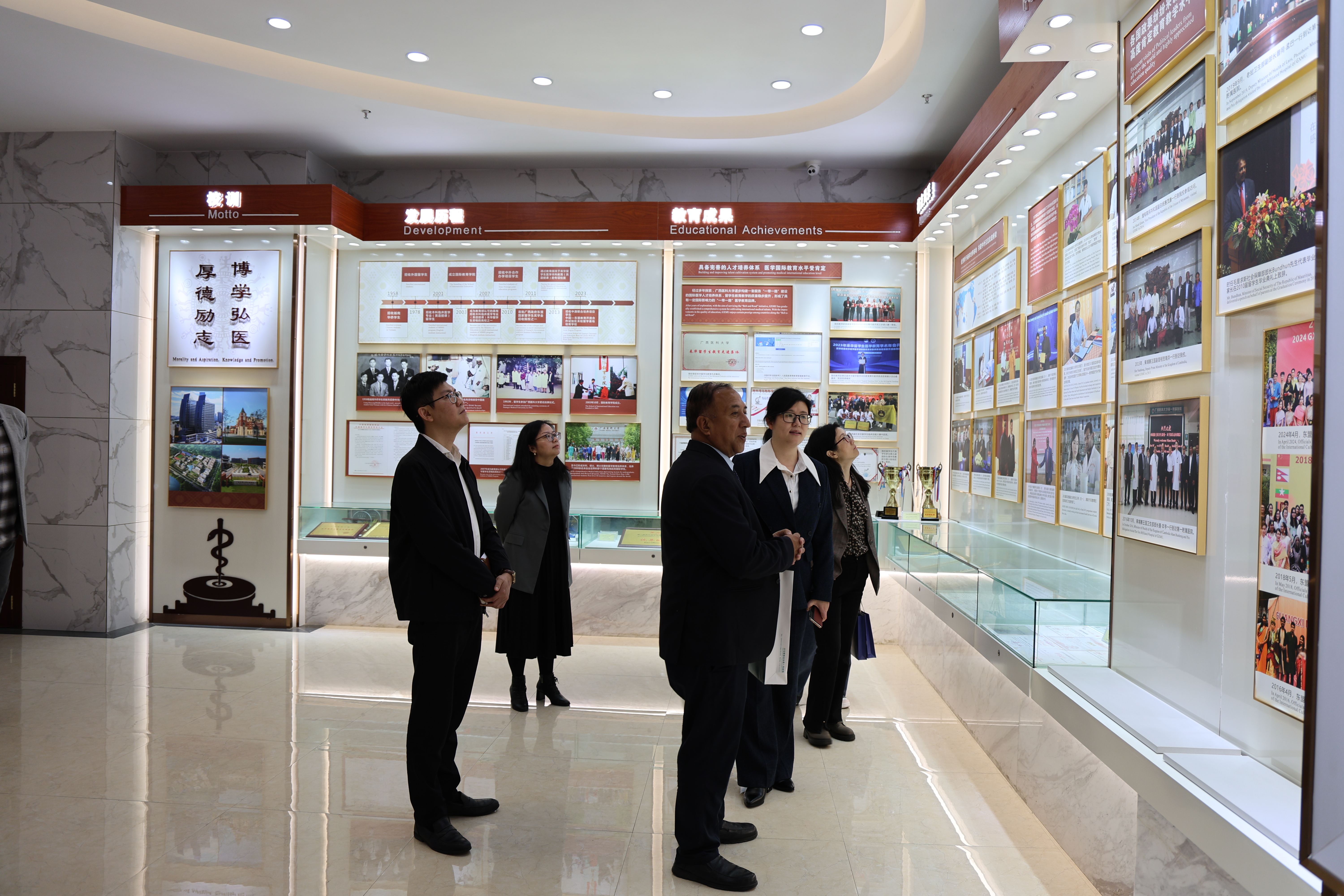 会后,陈俊强为苏希尔颁发国际教育学院校友会副会长聘书及纪念品。苏希尔一行参观了国际教育学院、第一附属医院医学模拟中心等地深入了解学校国际教育的发展情况。