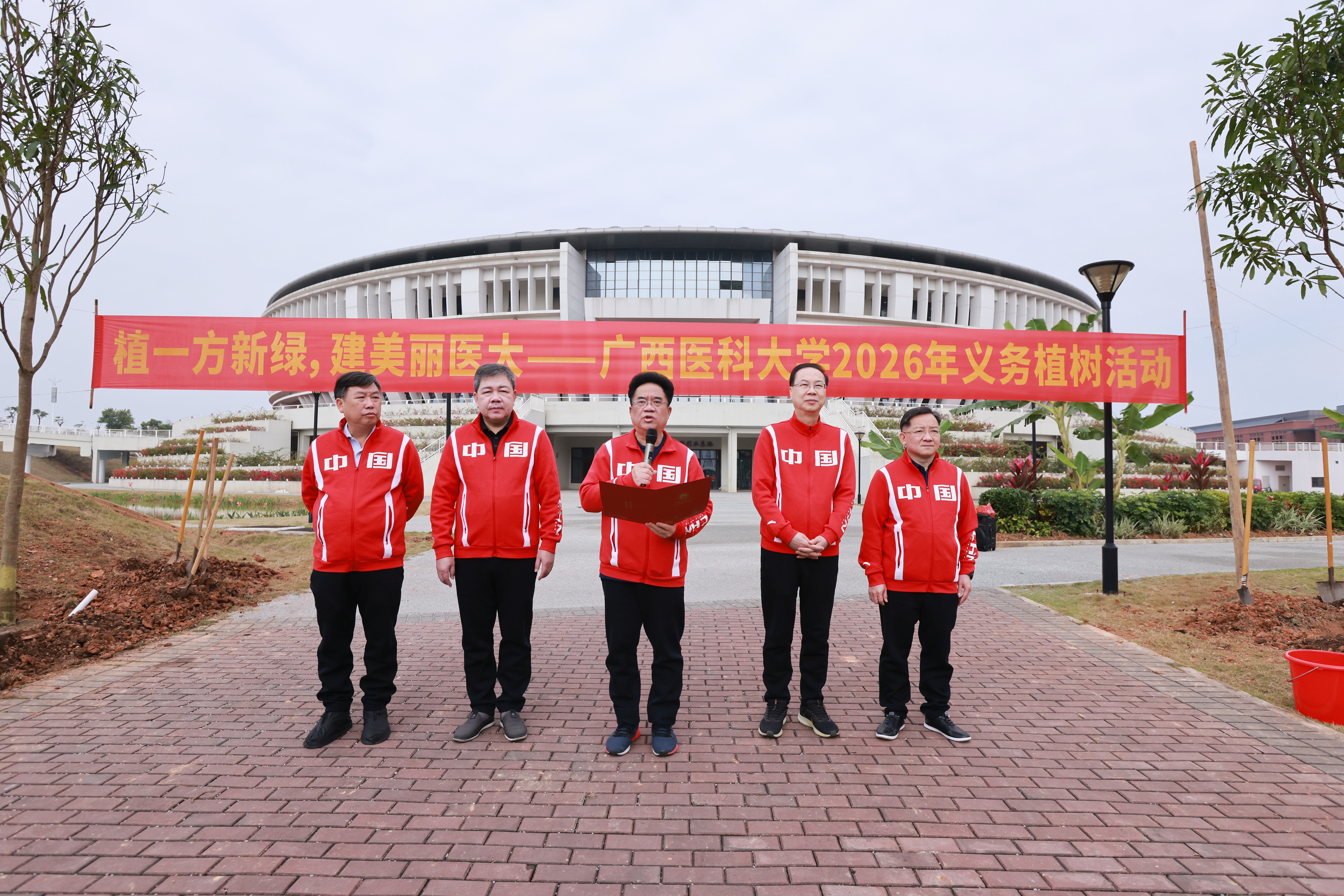 春和景明,万物勃发。在全国两会召开、第48个植树节即将到来之际,3月11日上午,我校在武鸣校区开展“植一方新绿,建美丽医大”主题义务植树活动。校长曾志羽,党委副书记刘灵光,驻校纪检监察组组长韦敏观,副校长陈俊强、卢德成出席活动,学校绿化委员会全体成员、师生代表共同参与,活动由陈俊强主持。