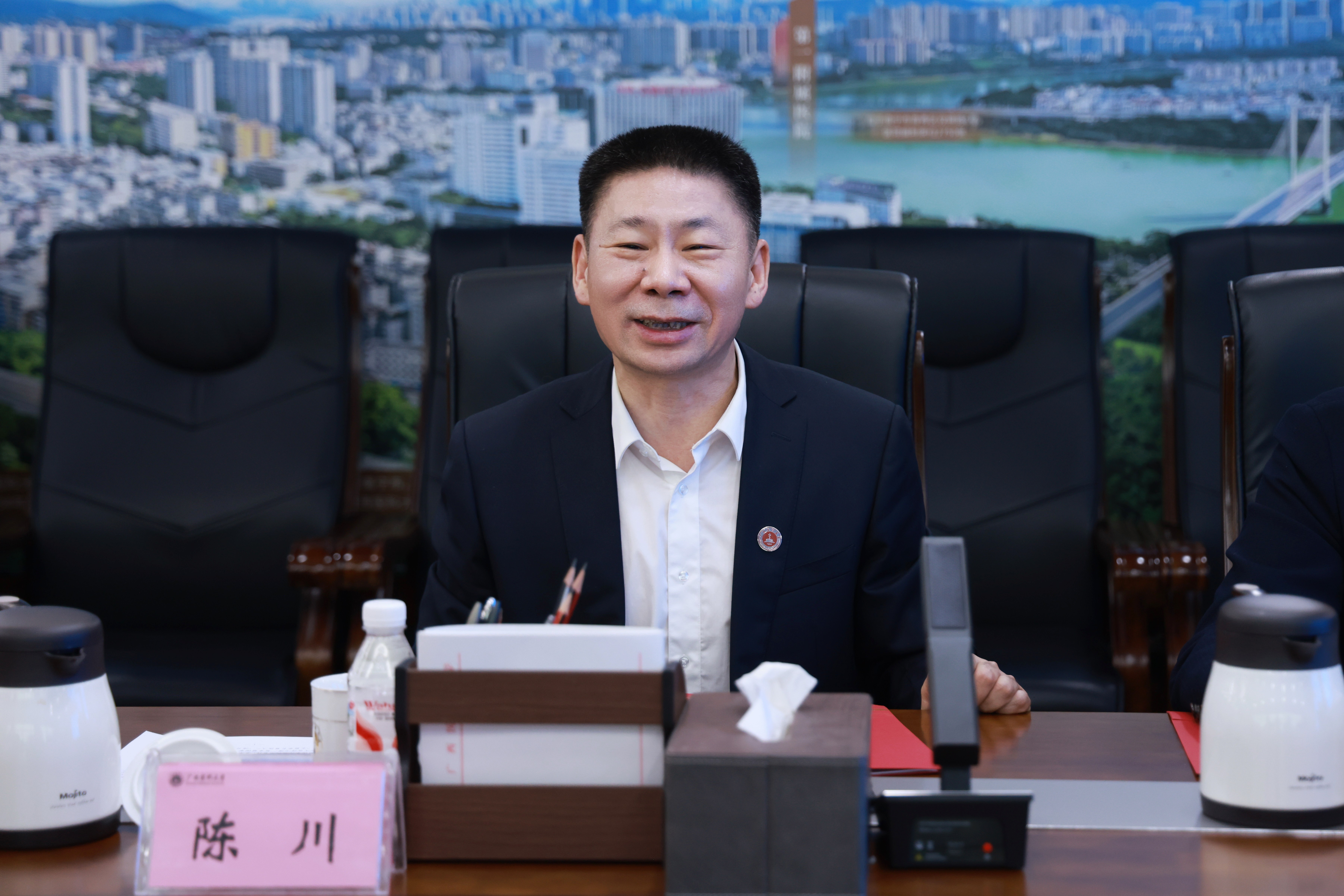 陈川诚挚欢迎金焕民一行来访交流,他表示,温州医科大学在差异化办学、优势学科培育等方面的做法和成功经验,具有很好的借鉴意义。希望两校以此次交流为契机,在国际学生招培、高峰学科建设、人工智能赋能等方面加强沟通合作,共同探索地方医学院校高质量发展新路径,服务推动区域卫生健康事业迈上新台阶。