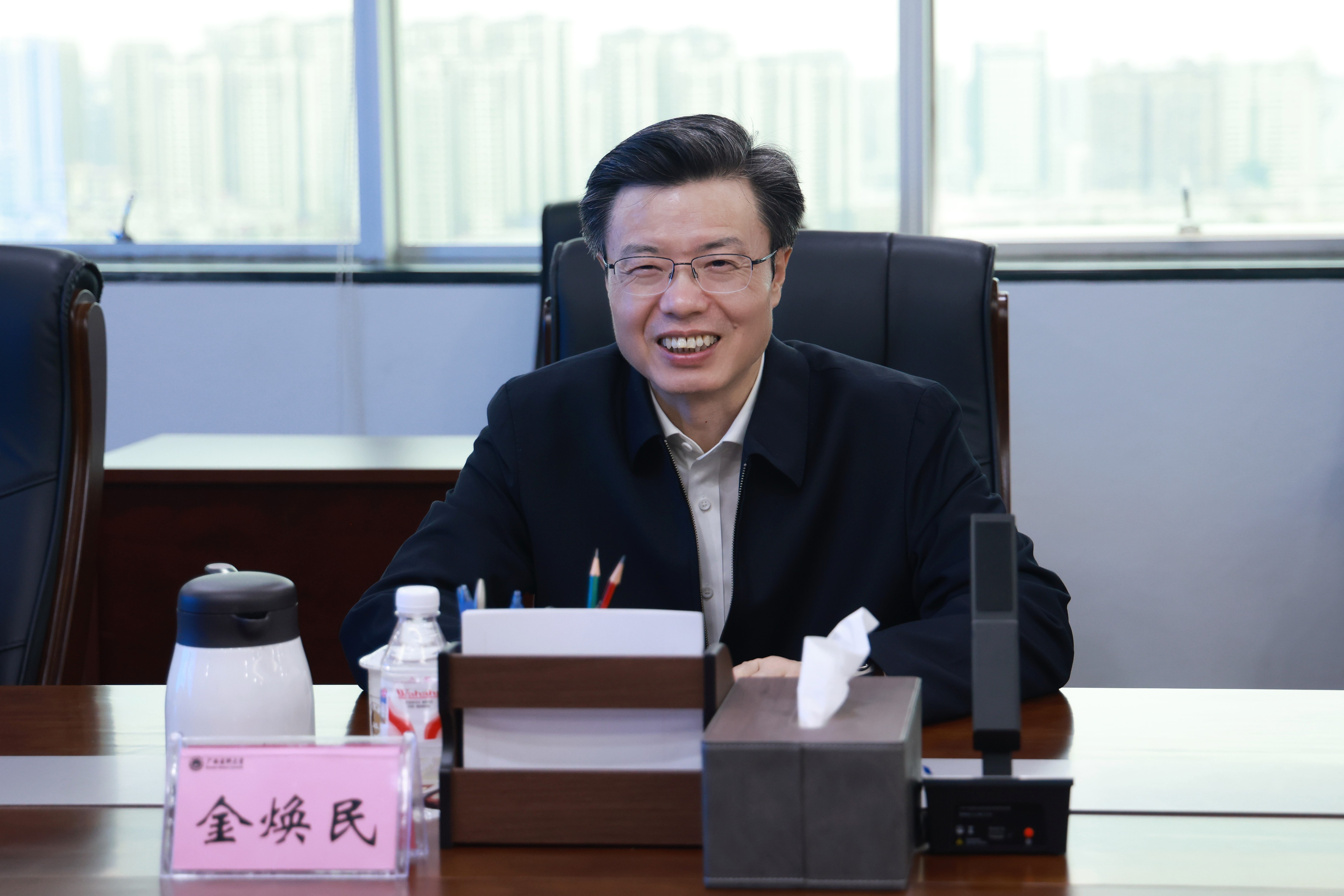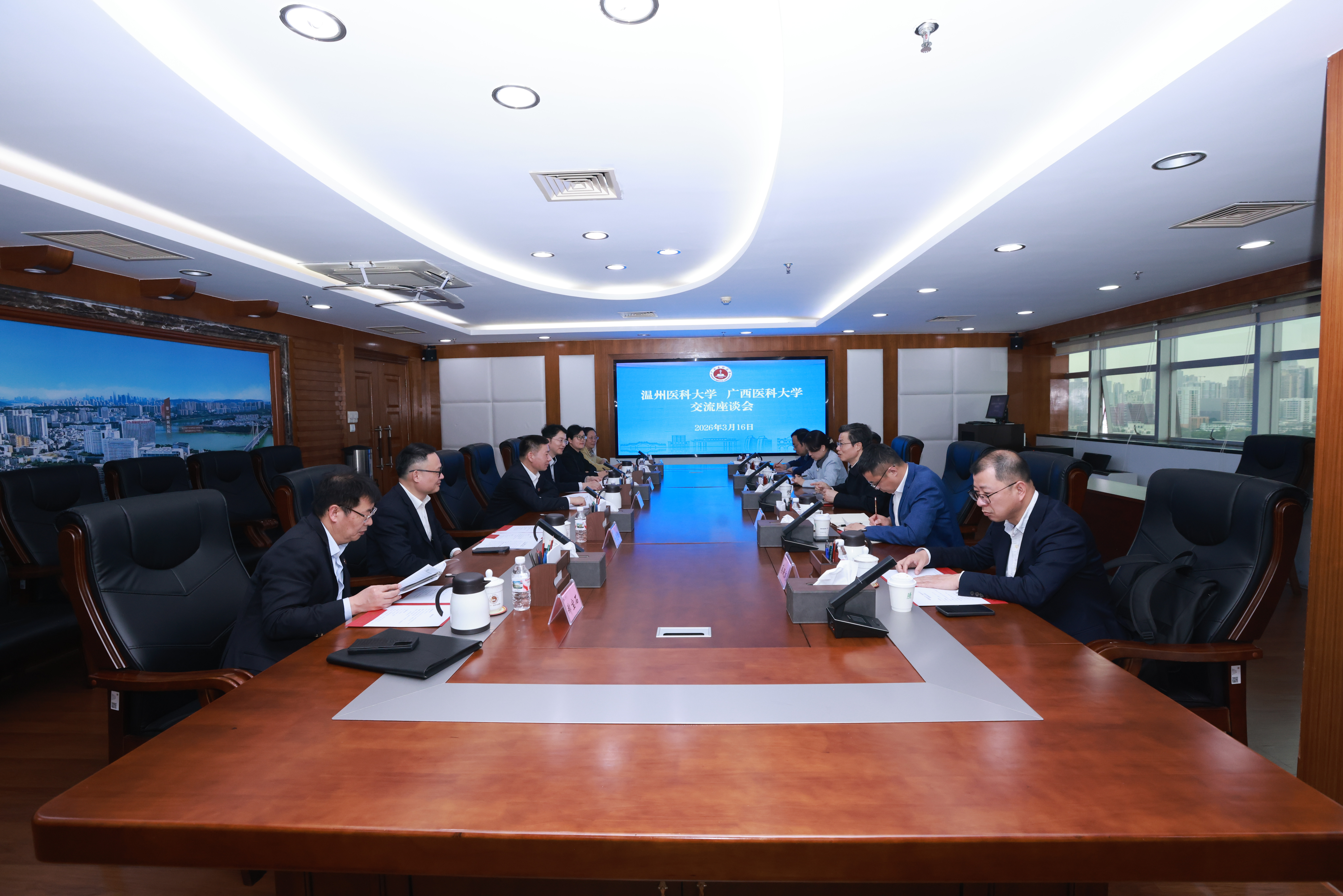 2026年3月16日下午,温州医科大学党委书记金焕民带队到我校调研交流。校党委书记陈川、副校长李浪出席座谈会,两校相关职能部门负责同志参加座谈。