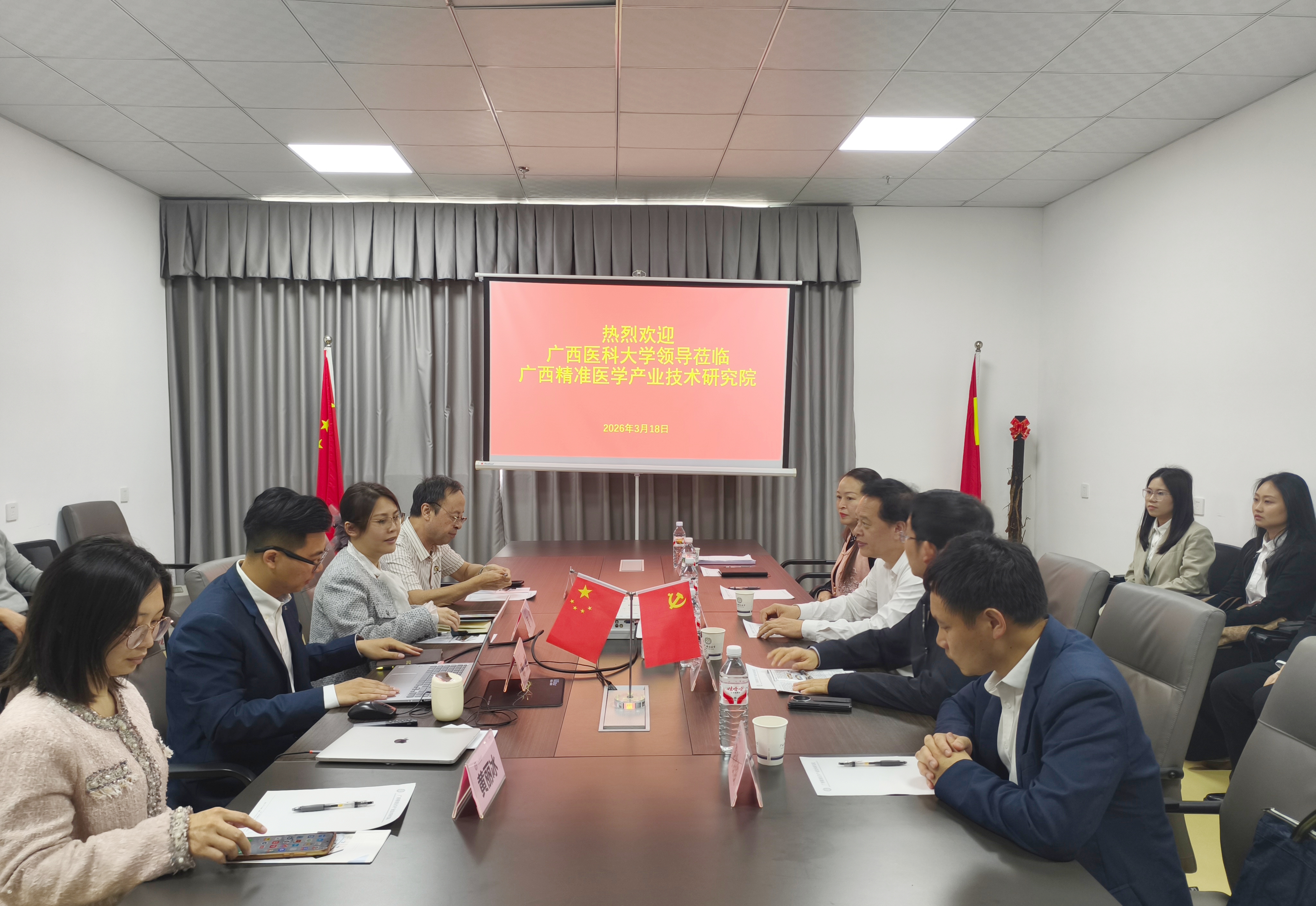 为扎实推进访企拓岗促就业工作,深化校企合作协同育人,精准对接行业人才需求,3月18日上午,学校副校长廖红兵与公共卫生学院师生代表一同走进广西精准医学产业技术研究院,开展走访调研与座谈交流。