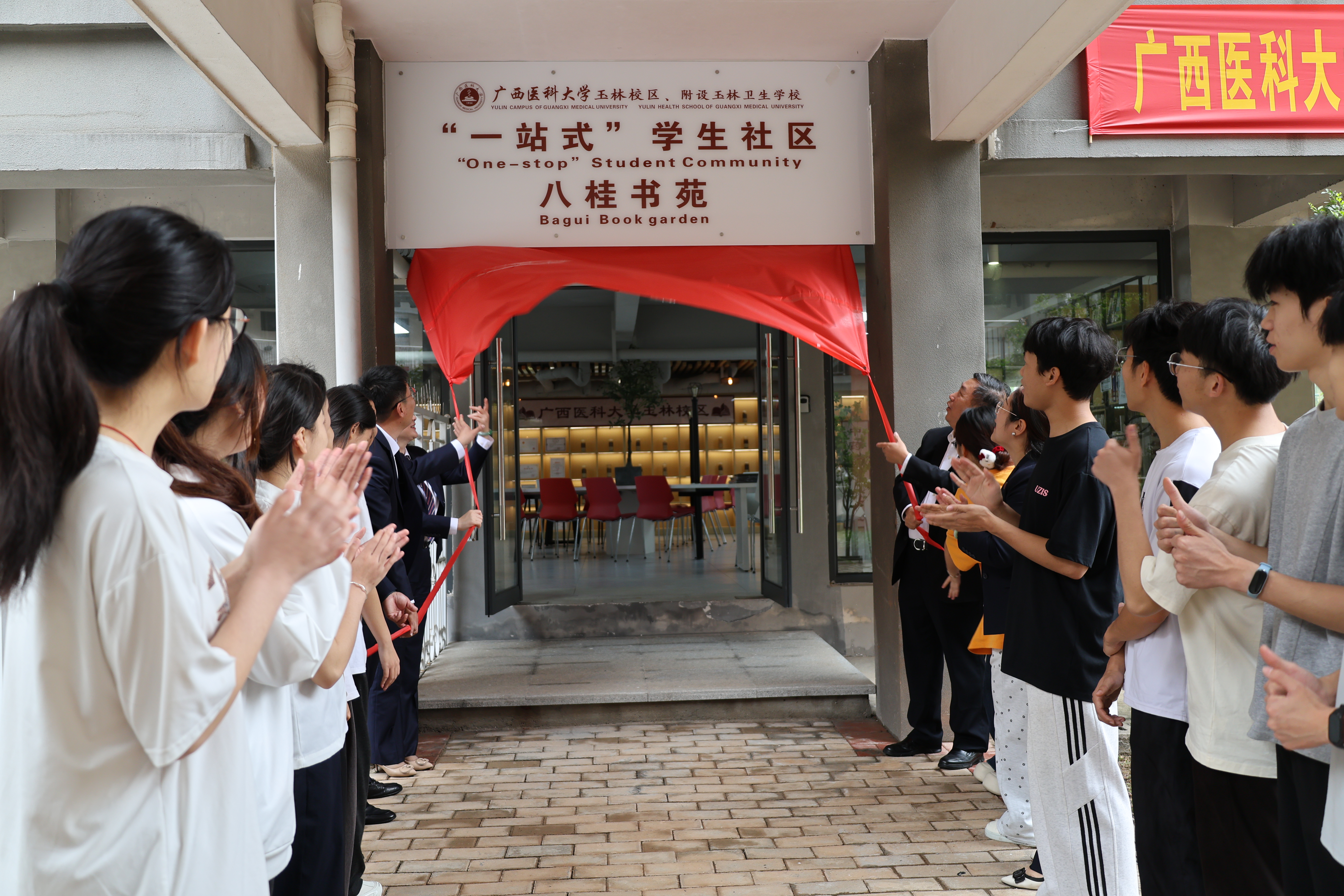 该社区总面积超3000平方米,投入300余万元,建有“学生之家”“八桂书苑”及同日开业的特色“药食同源馆”。仪式后,校领导实地走访社区并与学生交流,勉励大家积极参与社区治理,实现自我教育、管理与服务。