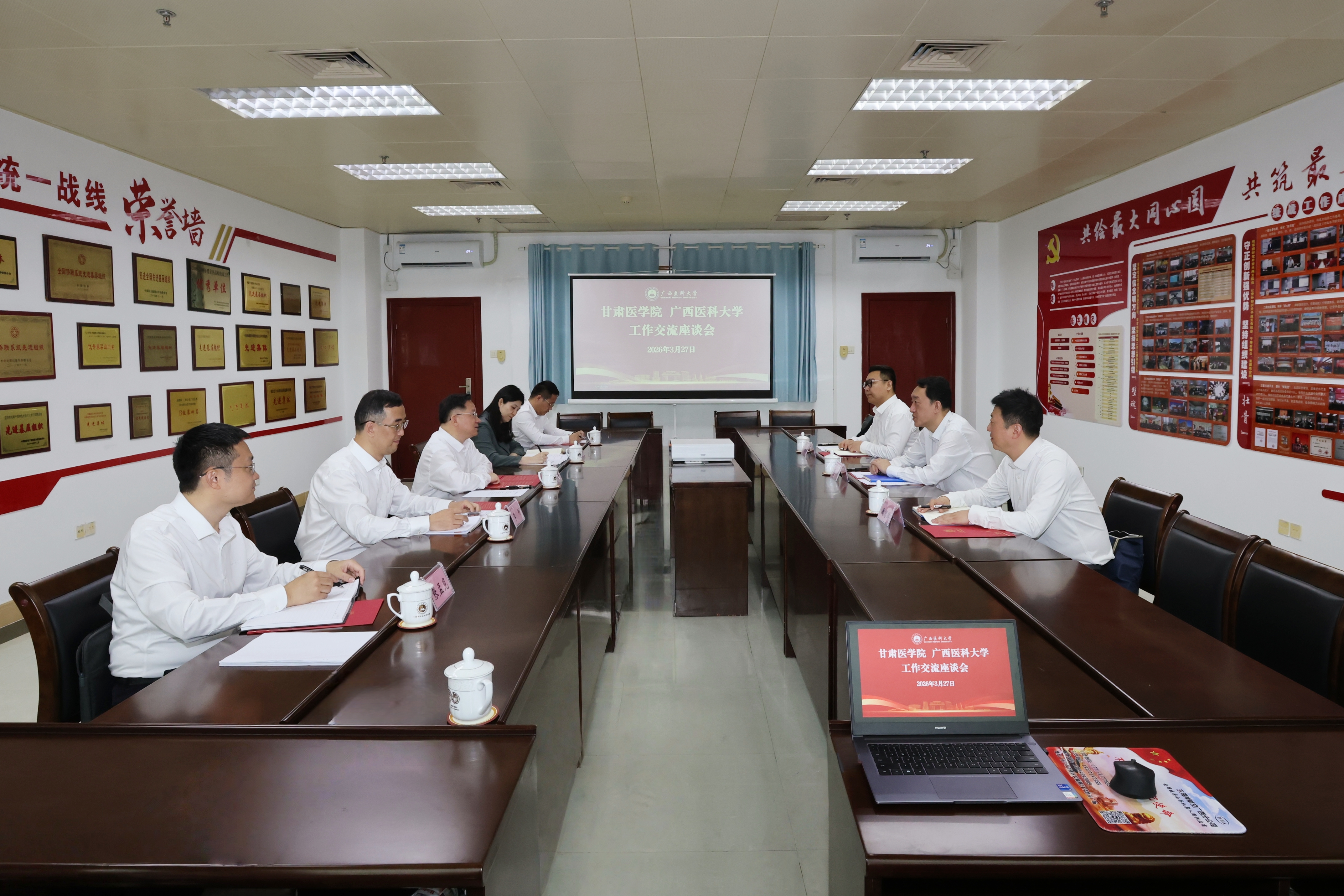 3月27日上午,甘肃医学院党委副书记李岳一行到我校调研交流。座谈会在校本部综合楼703会议室举行,由副校长卢德成主持。双方相关职能部门负责同志参加座谈。