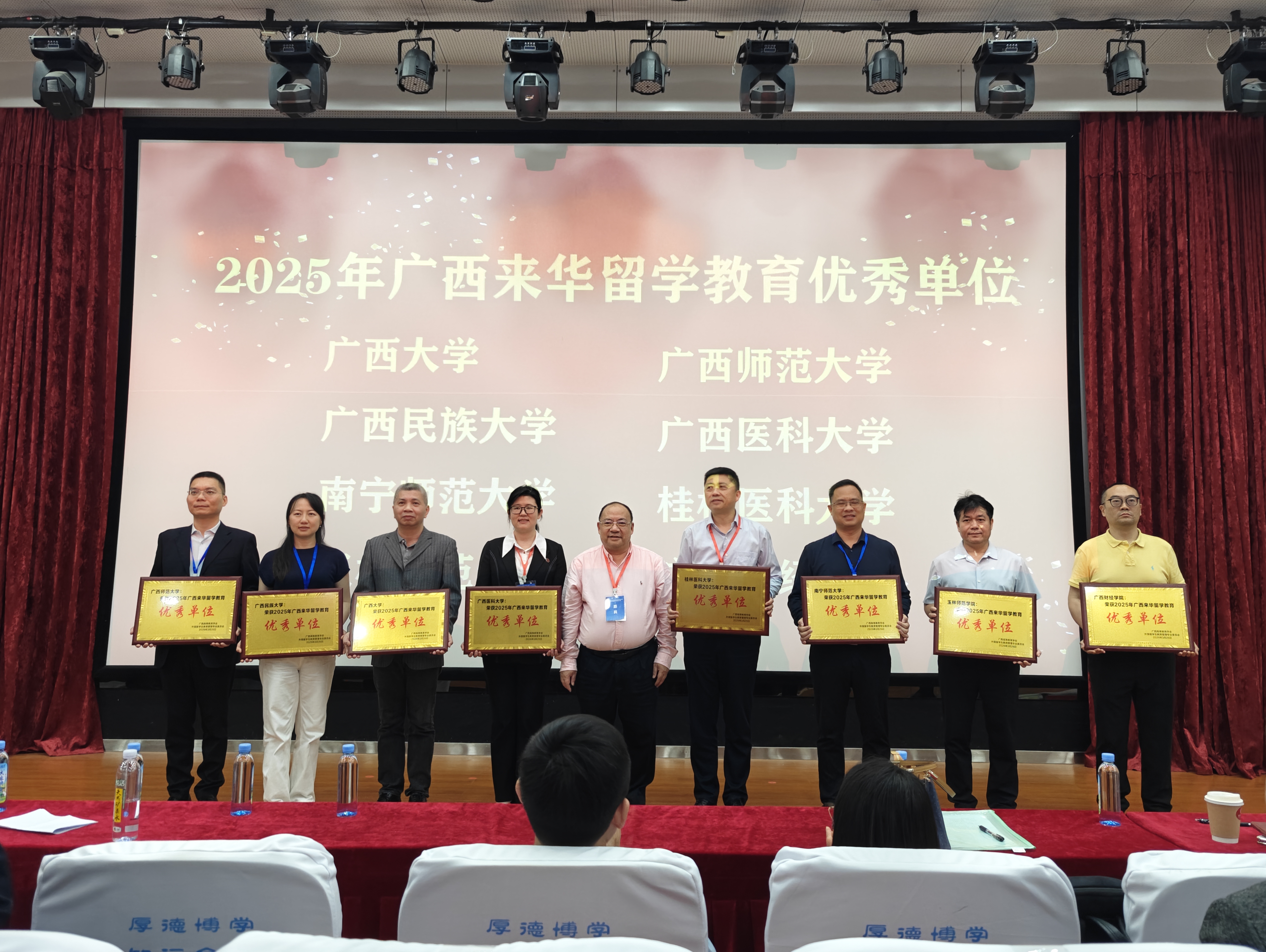 3月26日,广西高等教育学会外国留学生教育管理专业委员会2025年年会暨表彰大会在玉林师范学院召开,我校荣获2025年度广西来华留学教育“优秀单位”称号,5人获“优秀个人”称号,2人获“优秀辅导员”称号。