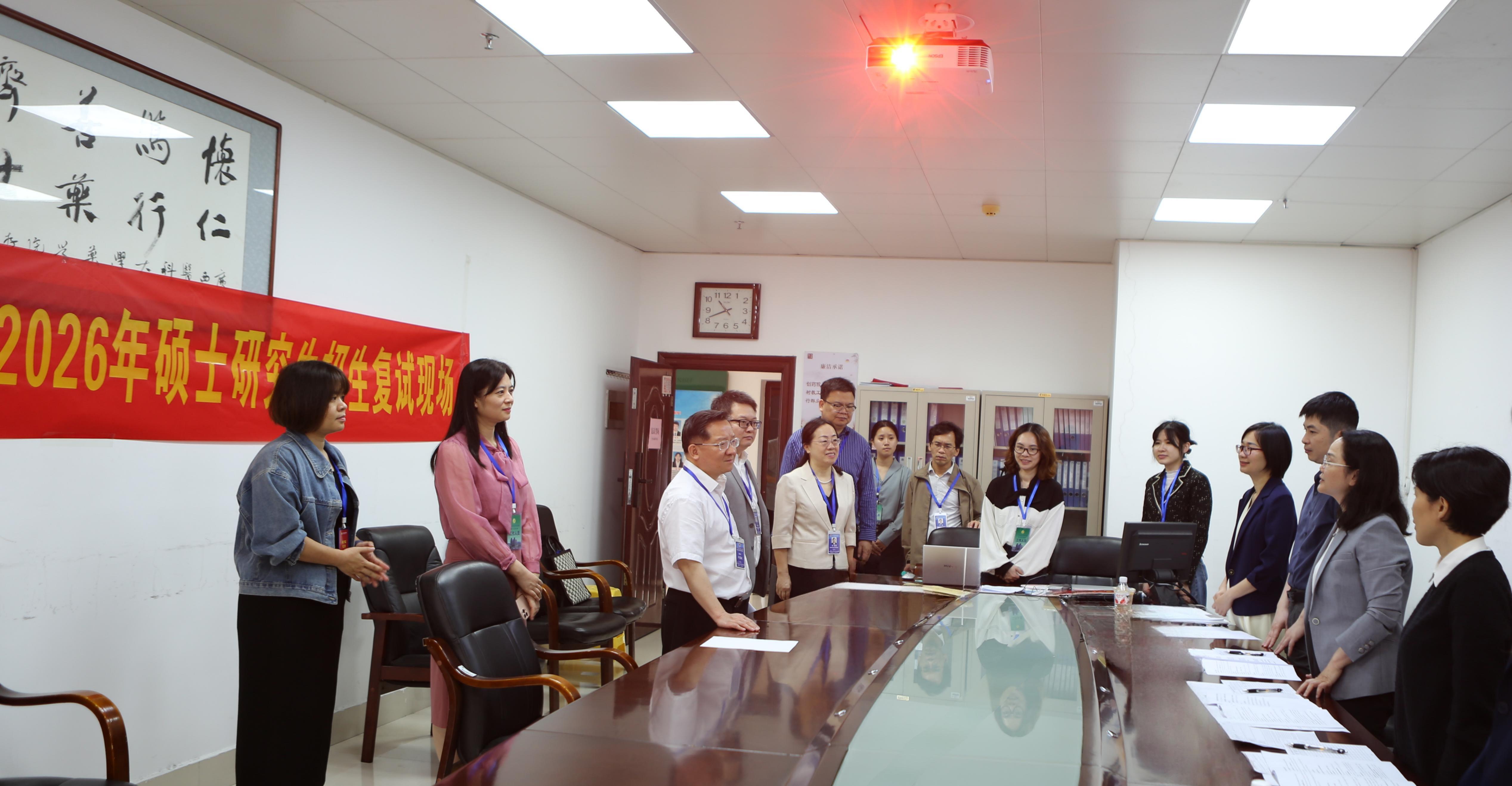 2026年3月25日至30日,我校硕士研究生招生考试第一志愿考生复试录取工作有序开展。为确保复试过程公平、公正、规范,严把人才选拔质量关,校长曾志羽、副校长卢德成带队深入各复试考点检查指导工作,研究生院、研究生工作部、驻校纪检组、党风廉政办相关工作人员参加检查。