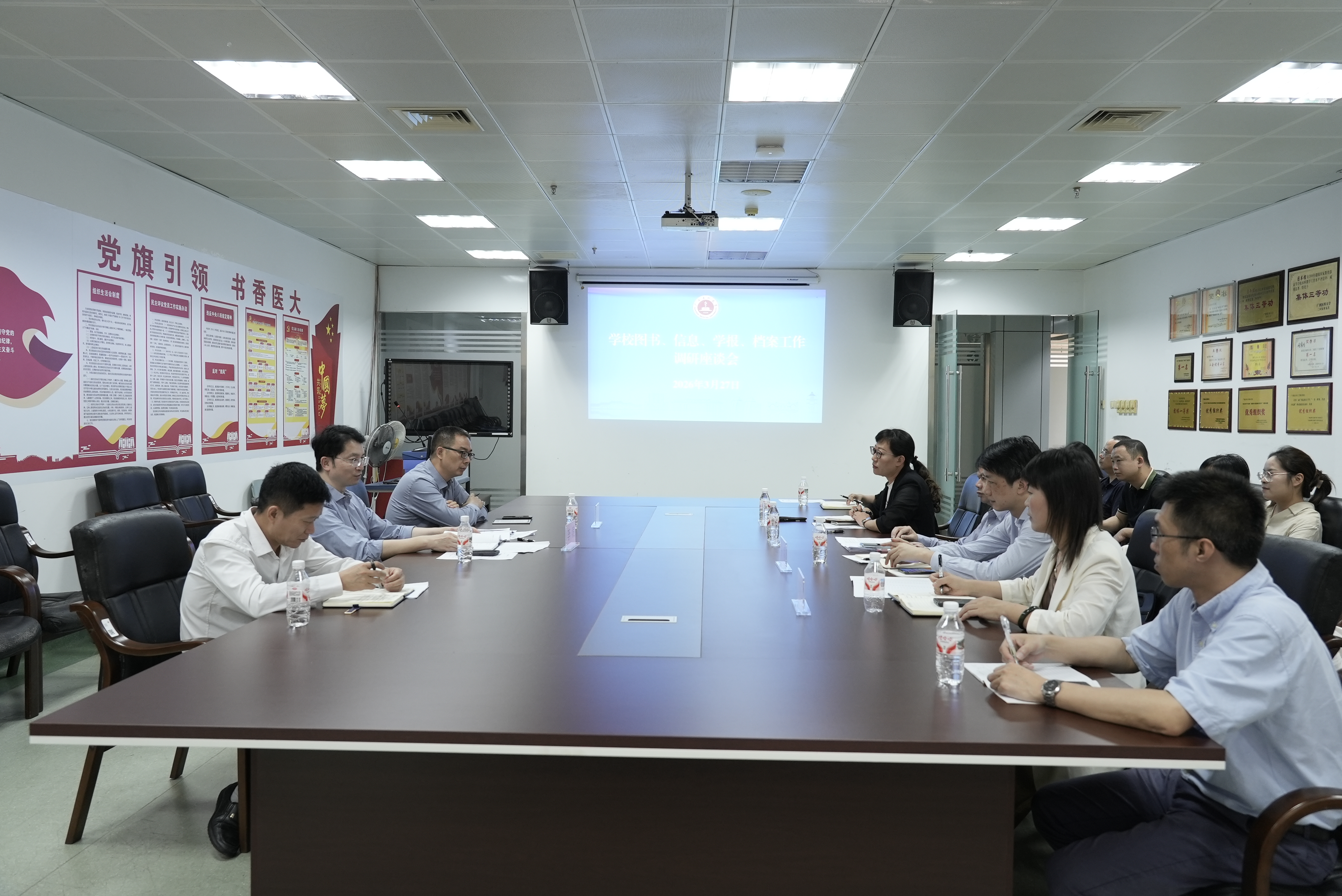为进一步提升师生服务保障水平,3月27日,学校副校长李浪带队到图书馆、学报编辑部、信息中心、档案馆调研指导,实地走访档案馆库房、信息中心机房、图书馆综合服务大厅,现场查看各部门工作环境、设施运行及日常工作管理情况,召开调研座谈会。