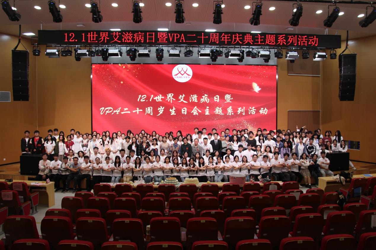 当日,VPA分别在校园东区和西区通过趣味游戏和互动问答开展“世界艾滋病日”防治宣传活动。当晚,VPA在武鸣校区图书馆举办121晚会及VPA20周年庆典,陈欢欢所长作为第一届VPA志愿者为社团二十周年庆典送上祝福。VPA创始人陆焯平肯定了社团二十届志愿者们的付出与行动,并对社团未来寄予期望。在防艾文艺汇演环节,各社团为庆典呈上精彩纷呈的表演,活动在欢声笑语中圆满结束。