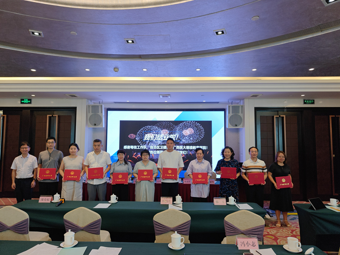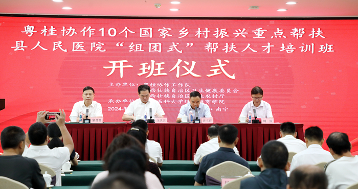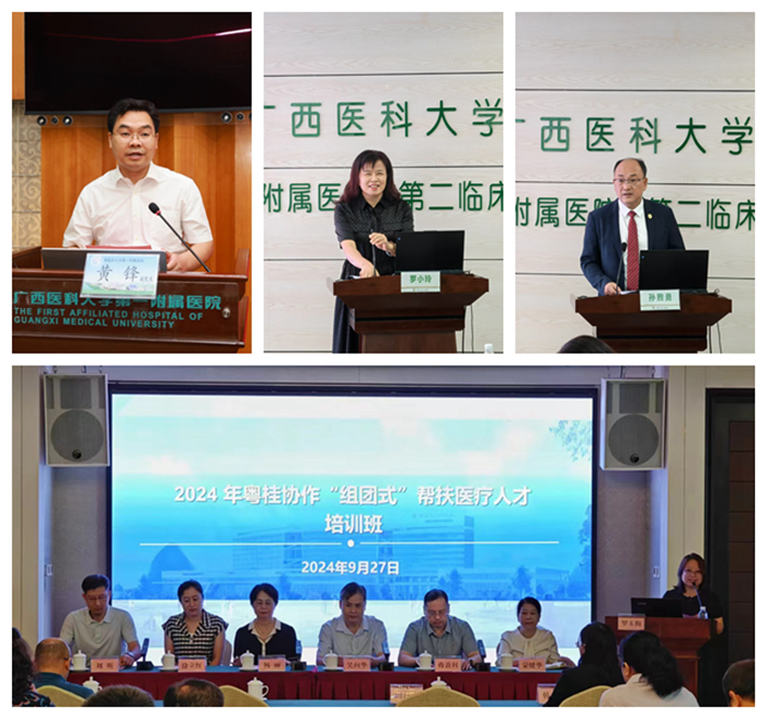 为深化粤桂医疗合作,促进医疗资源均衡与服务质量提升,9月22-27日,继续教育学院成功承办粤桂协作10个国家乡村振兴重点帮扶县人民医院“组团式”帮扶人才培训班。自治区农业农村厅党组成员、粤桂协作工作队临时党委副书记、副领队黄立群,广东省卫生健康委党组成员、副主任汪洪滨,广西壮族自治区卫生健康委党组成员、副主任黎君君出席开班仪式并致辞。来自中组部“组团式”医疗帮扶人才帮扶的10家县人民医院共67人参加了培训。