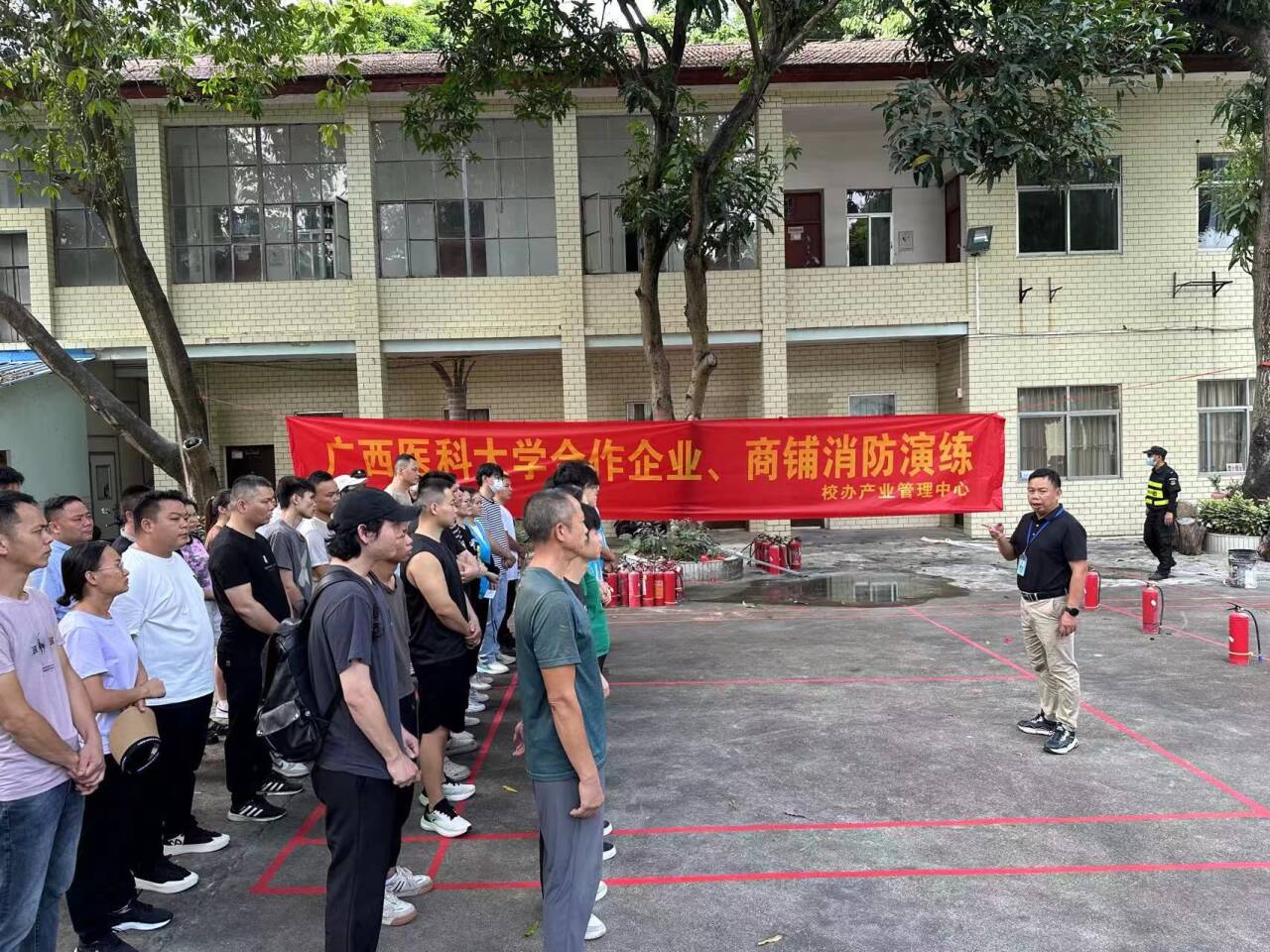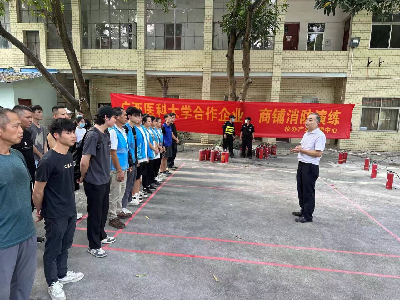 为进一步强化合作企业、商铺安全生产责任意识,加强安全生产管理,及时消除安全隐患,9月27日下午,校办产业管理中心在校本部组织开展合作企业、商铺消防安全演练。校内合作企业、商铺负责人及工作人员参加活动。活动由校办产业管理中心副主任陈银水主持。