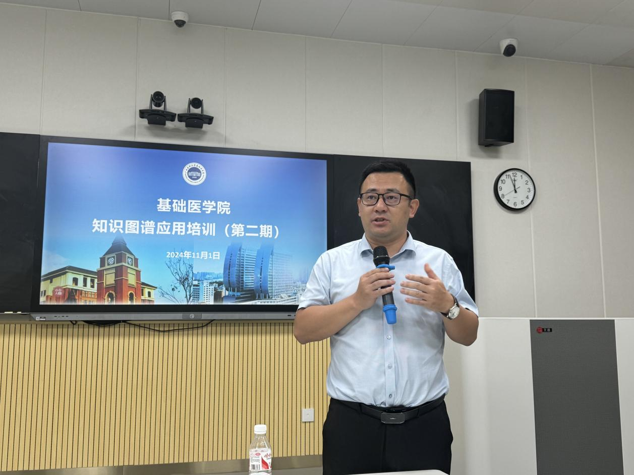 11月1日上午,基础医学院在药基楼一楼第5智慧教室举办知识图谱建设阶段性成果汇报暨知识图谱培训(第二期)会议。学院副院长战廷正、各课程知识图谱建设负责人、团队教师代表、教研科工作人员共20余名教师参加了此次会议。