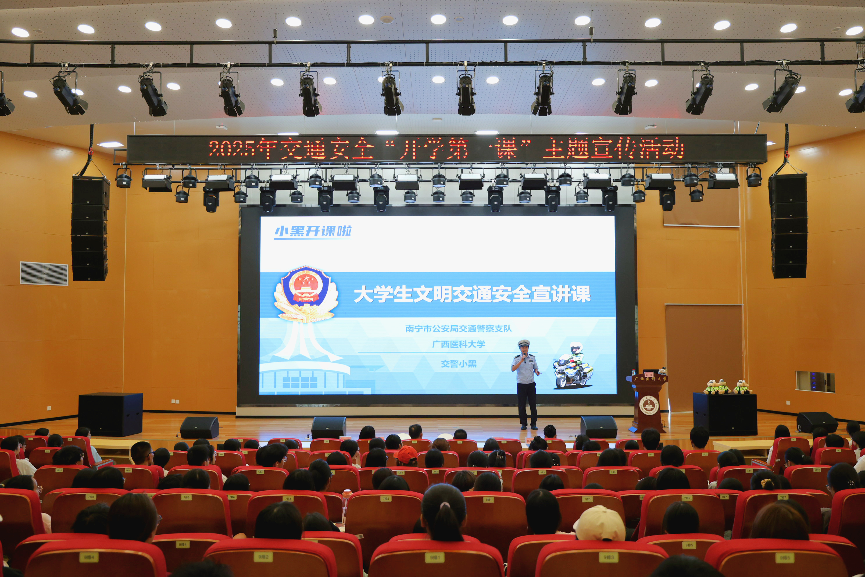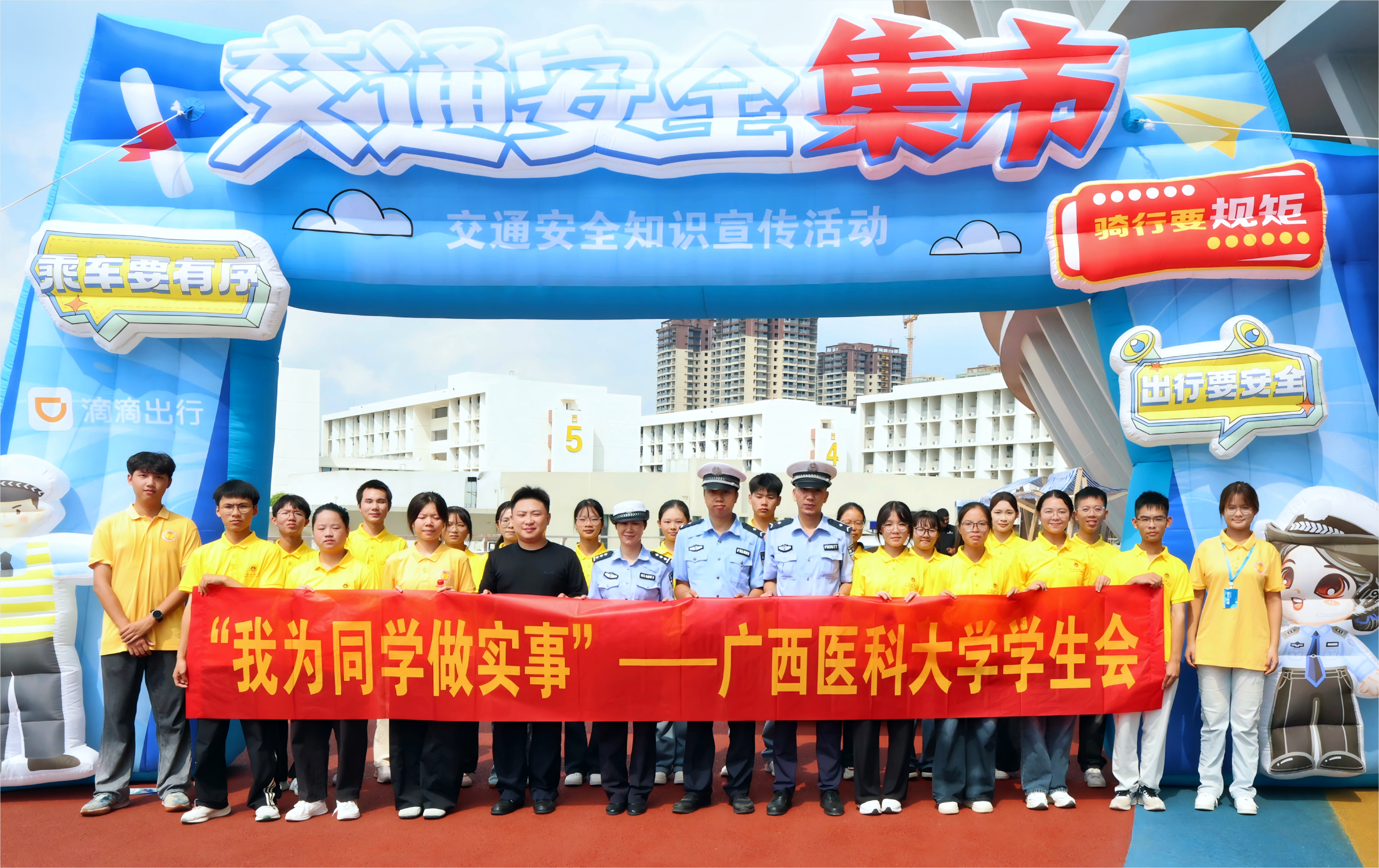 为扎实推进“我为同学做实事”工作成效,切实提升青年学生文明交通与安全出行意识,10月12日上午,学校团委邀请南宁交警支队到南宁-武鸣校区开展2025年交通安全主题宣传活动,400余名师生参加了活动。