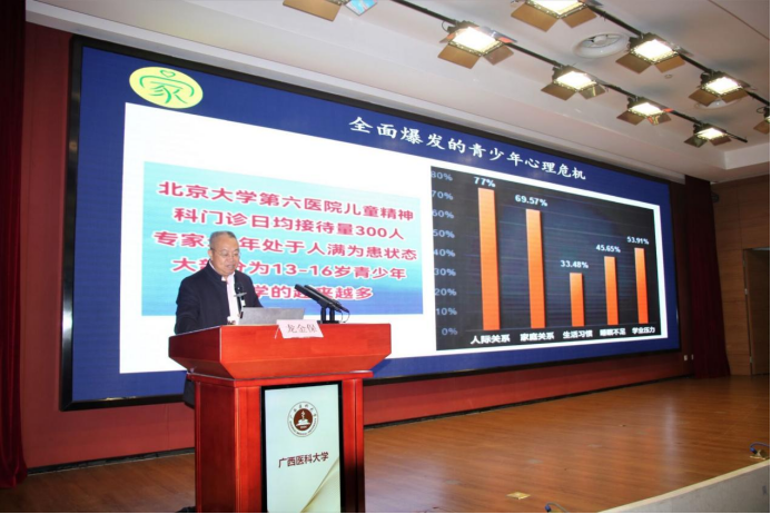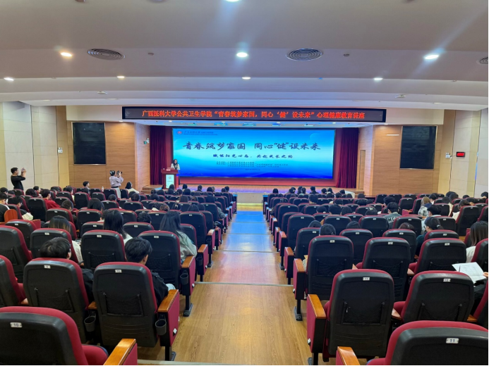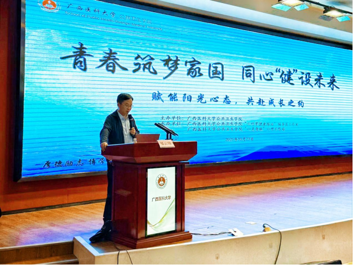 为进一步提升学生心理健康水平,夯实学生全面发展的成长根基,10月23日晚,广西医科大学公共卫生学院“三叶草健康驿站”辅导员工作室和学院“心灵奇旅”心理工作站在校本部科技楼报告厅举办“青春筑梦家国,同心‘健’设未来”心理健康教育讲座。学院党委书记邹云锋、副书记唐凤,主讲嘉宾龙金保教授,南宁市公安局心理咨询师石榴老师,全体辅导员及研究生、本科生学生代表参加活动。