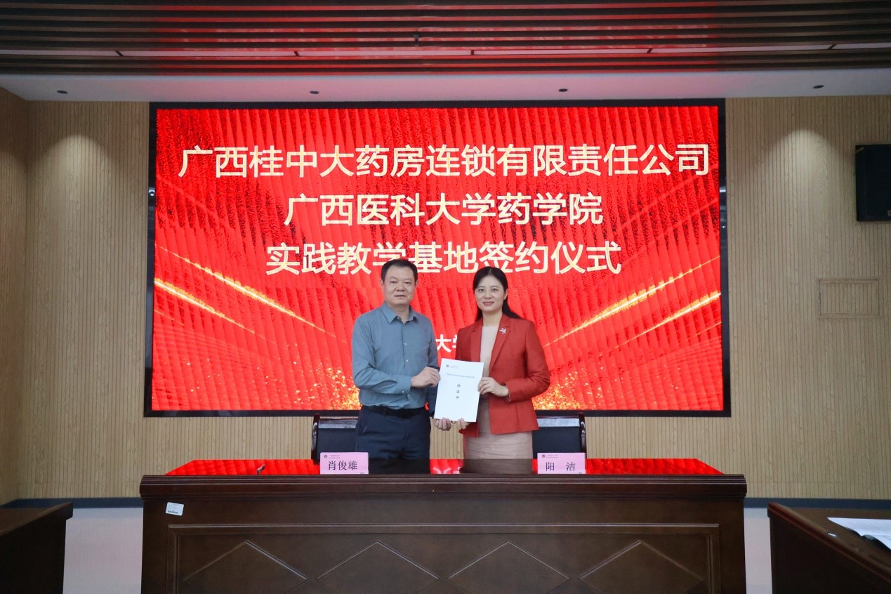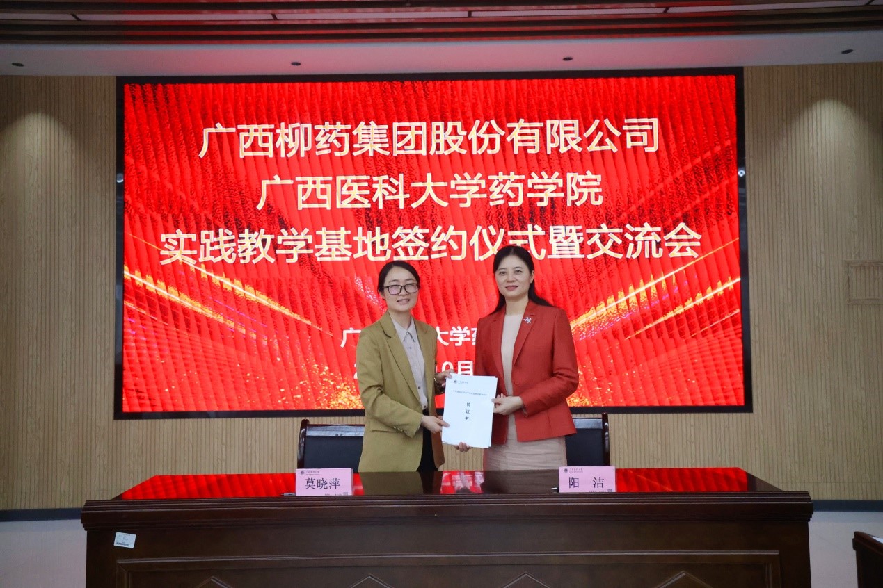 随后,莫晓萍代表柳药集团与阳洁院长签订实践教学基地协议,肖俊雄代表集团旗下桂中大药房、医大大药房完成实践教学基地签约。