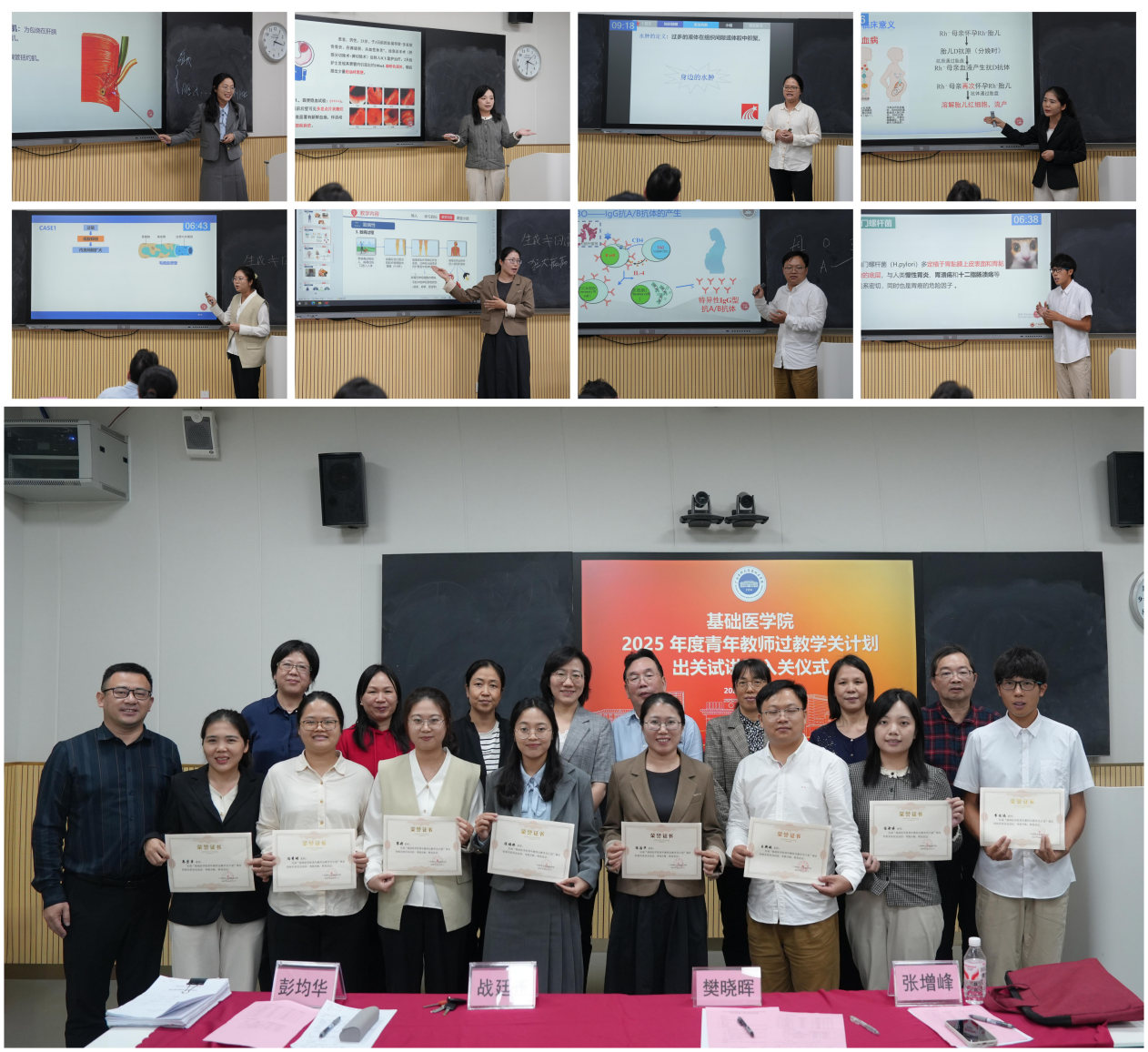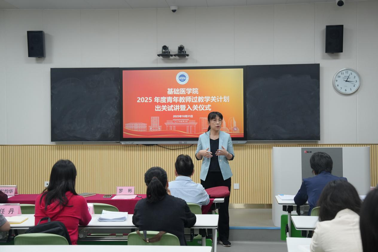 10月31日下午,基础医学院在校本部药基楼举行了2025年度青年教师“过教学关”出关试讲活动暨入关仪式,以夯实教学基本功、传承优良教学传统。学院罗彬院长,评审专家、指导教师及出入关青年教师齐聚现场,活动由战廷正副院长主持。