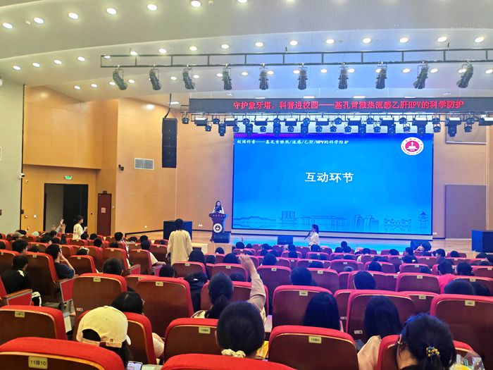 讲座特邀南宁市疾控中心黄菊副主任医师、武鸣区疾控中心钱炜钊副主任医师、广西医科大学第一附属医院郭明华副主任医师专家担任主讲。专家们围绕基孔肯雅热防控、流感疫苗接种、乙肝传播阻断及HPV与宫颈癌预防等内容展开系统讲解,结合实例介绍传染病预防措施,并强调疫苗接种在构建免疫屏障中的核心作用。互动环节气氛热烈,同学们就疫苗选择、接种程序等积极提问,专家们逐一进行了专业细致解答。
