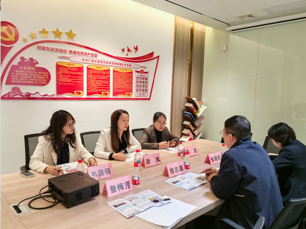 为深入推进校企合作、精准对接企业人才需求,12月9日下午,公共卫生学院党委副书记唐凤、卫生化学教研室主任陈星、辅导员韦蓓蓓一行,前往广西中道城市运营管理有限公司(简称“中道服务”)开展访企拓岗专项活动,中道服务总经理修忠泉等人对学院一行到来表示热烈欢迎。