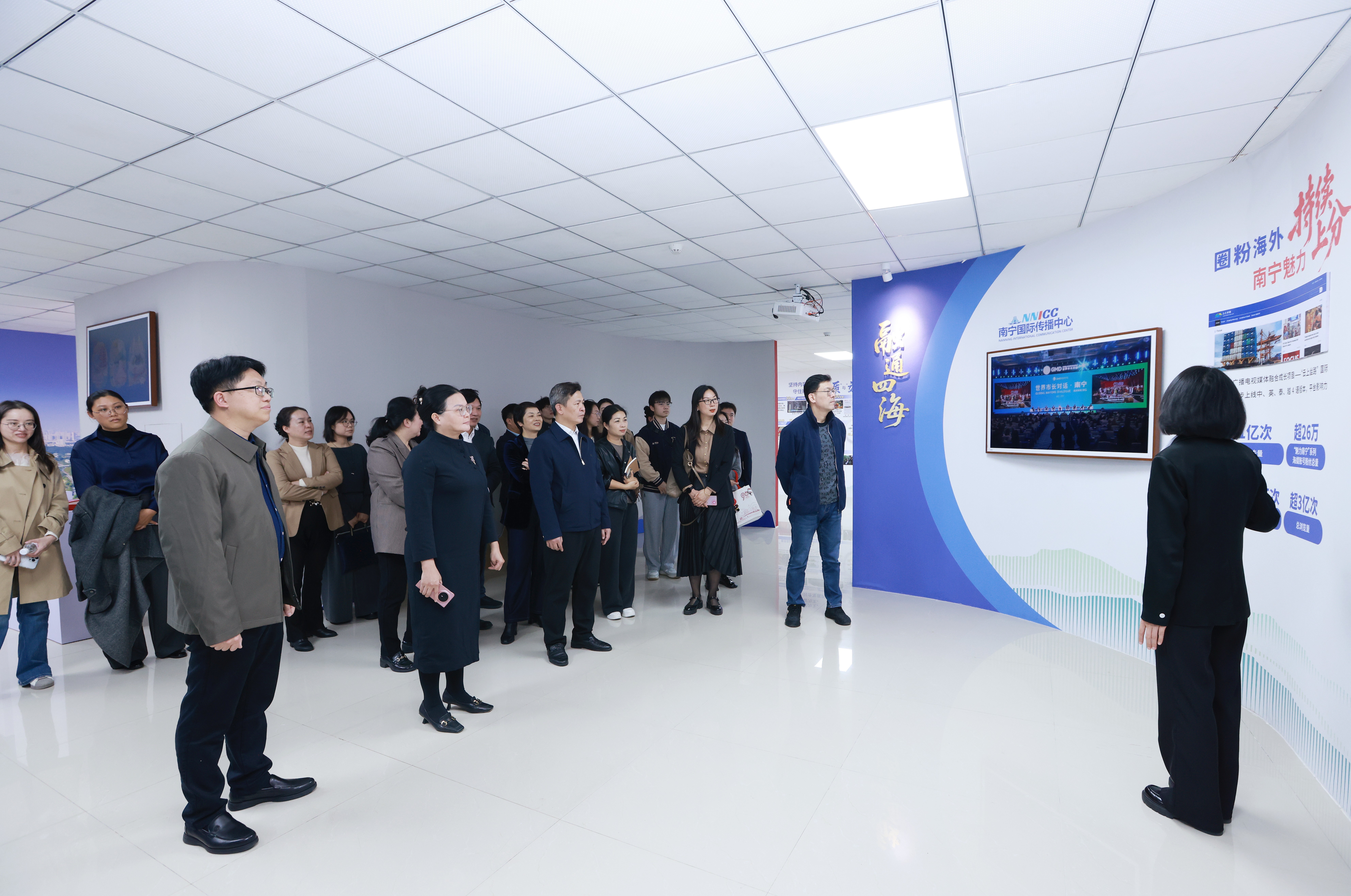 研学团参观了南宁市融媒体中心展馆及各功能区域,观看中心宣传视频,详细了解融媒体中心整合改革历程、组织架构调整、运营模式及媒体融合发展成果。