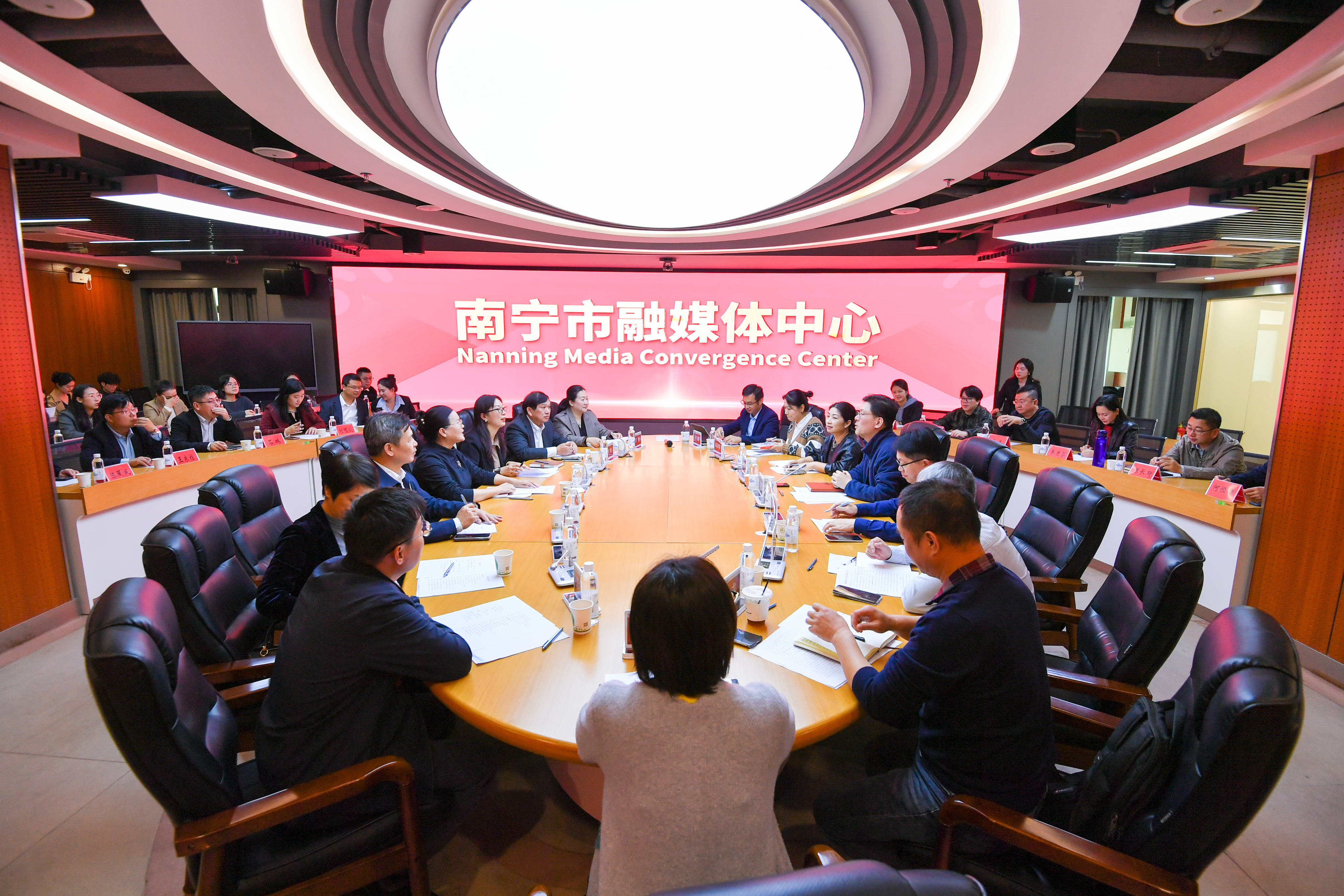为深化校院协同与校媒合作,进一步整合学校宣传资源、提升宣传思想文化工作质效,12月18日下午,学校党委宣传部部长李毅昂带领宣传骨干研学团一行24人,到南宁市融媒体中心开展专题交流活动。
