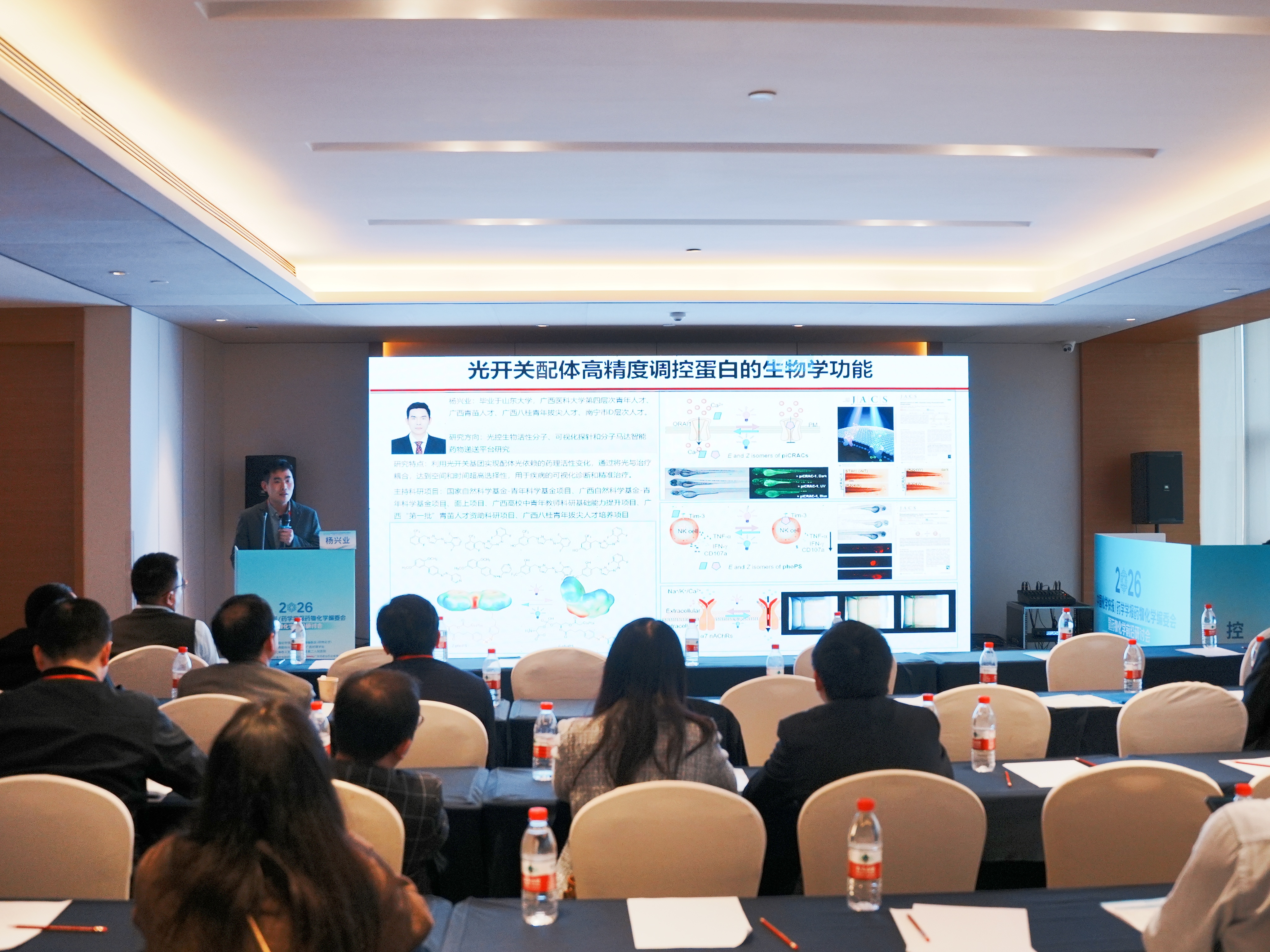会议期间,中国工程院陈芬儿院士等8位专家作主旨报告,内容涵盖药物化学前沿进展与创新路径。两个分论坛中,40余位中青年学者围绕热点议题展开深入交流,现场学术氛围浓厚。药学院院长、广西药理学会理事长阳洁教授主持了分论坛,药学院杨兴业博士分享了光驱动药物创新研究进展。