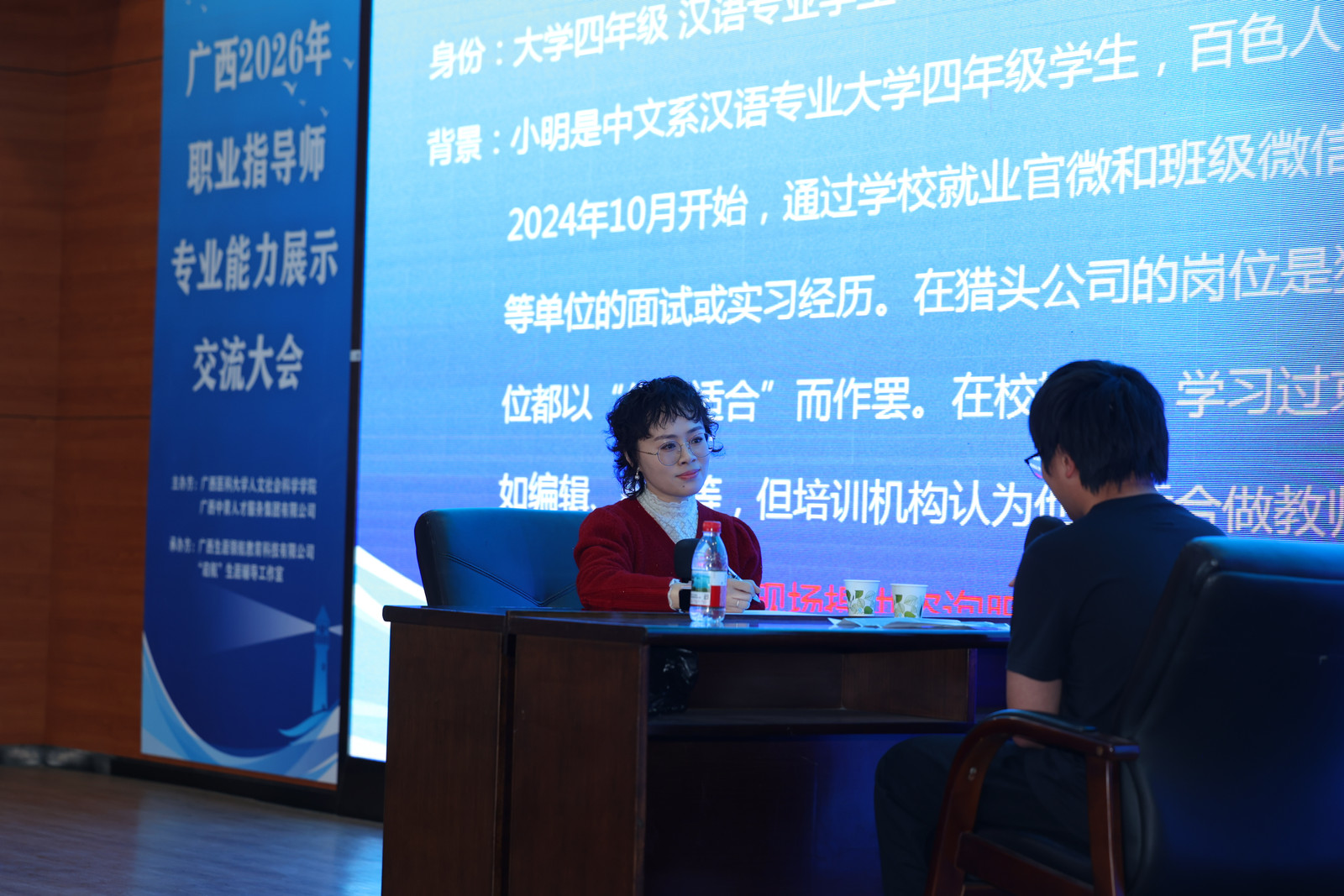 2月1日,由人文社会科学学院与广西中青人才服务集团有限公司联合主办,广西生涯领航教育科技有限公司、“启航”生涯辅导工作室承办的广西2026年职业指导师专业能力展示交流大会落幕。