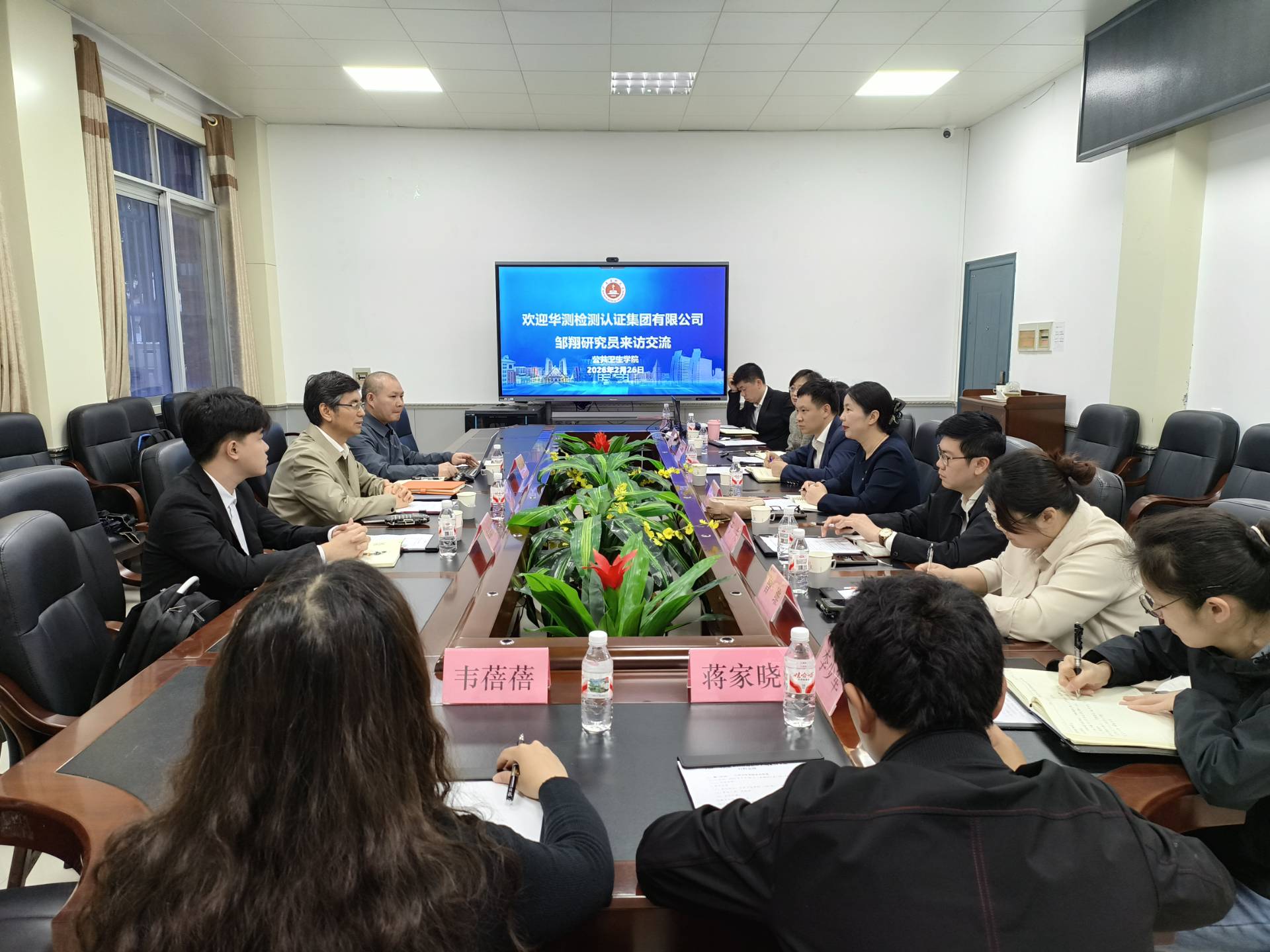 2月26日上午,学校上海校友联络处副会长、79级卫生系校友邹翔代表华测检测认证集团股份有限公司(以下简称“华测公司”)带队回访母校,先后到公共卫生学院、药学院开展交流洽谈。公共卫生学院院长苏莉、副院长蒋俊俊,药学院副院长陈芊茜,两个学院相关教研室主任出席交流座谈会,党校办副主任于夫和校友办相关负责人参加。