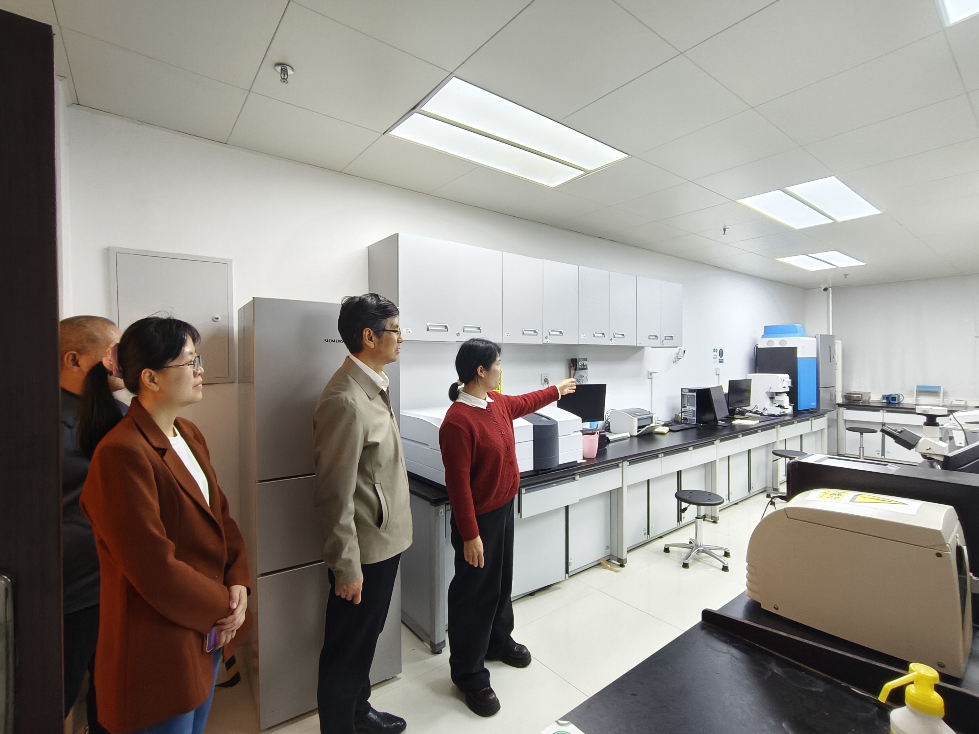 随后邹翔校友一行前往药学院继续走访交流,现场参观了药学实验中心。在自由交流环节,与会人员就药品与健康产品质量安全、产教融合合作、学生实习就业、科研项目合作等议题展开深度探讨,现场交流气氛热烈。