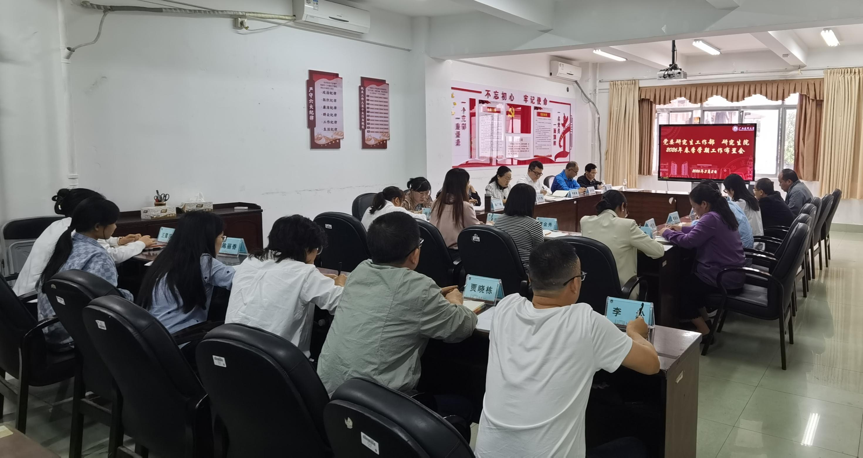 3月2日,我校党委研究生工作部、研究生院在校本部留四栋503会议室召开2026年春季学期工作布置会,全体教职工参会,会议由研究生院院长李新春主持。
