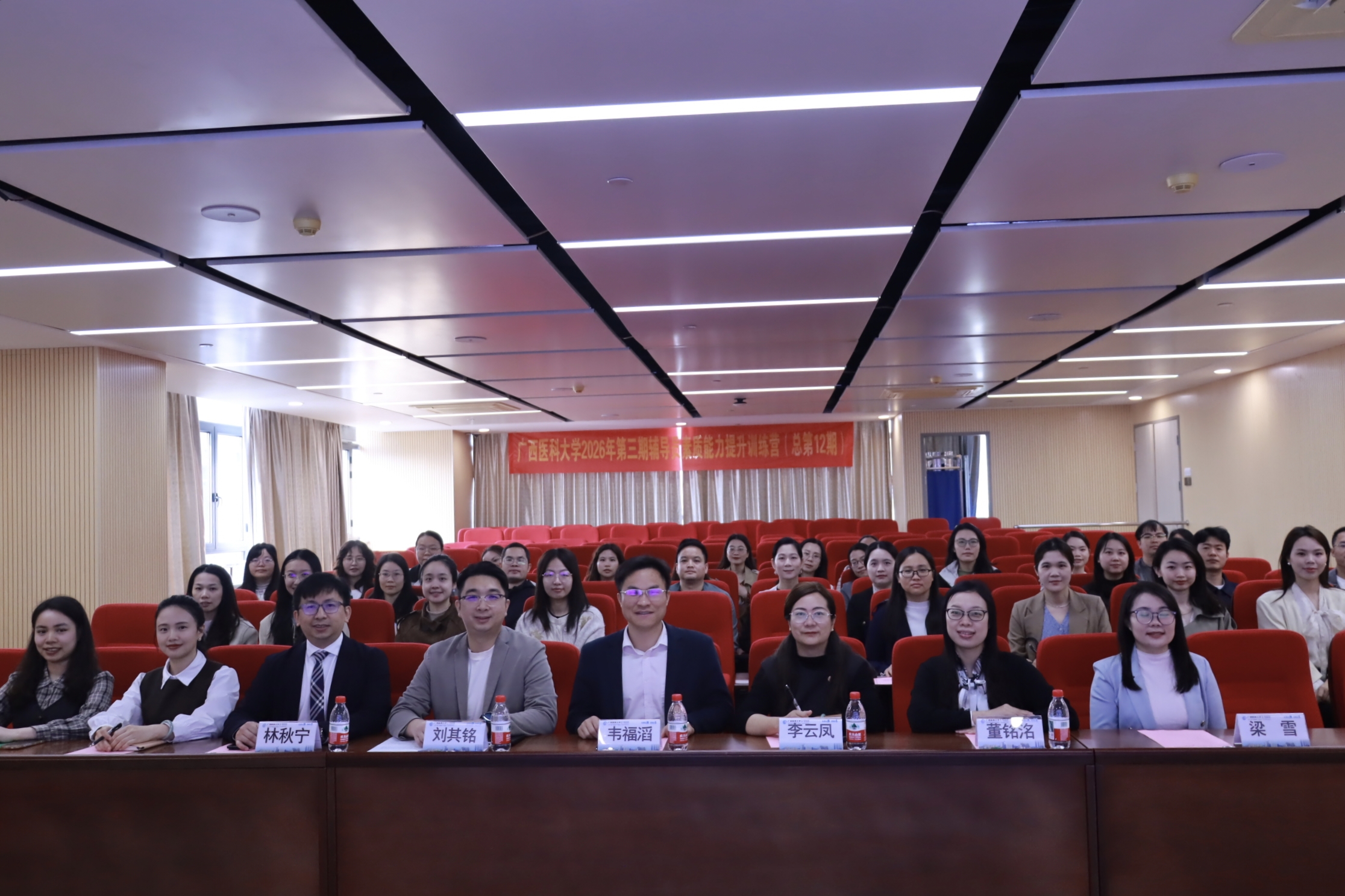 3月13日,广西医科大学2026年第三期辅导员素质能力提升训练营(总第12期)在校本部卓越楼14楼学术厅举办。活动由学生工作部(处)主办,第一临床医学院、“臻善领航”辅导员成长工作室承办,学生工作部(处)韦福滔副部(处)长出席,全校40余名辅导员参训。