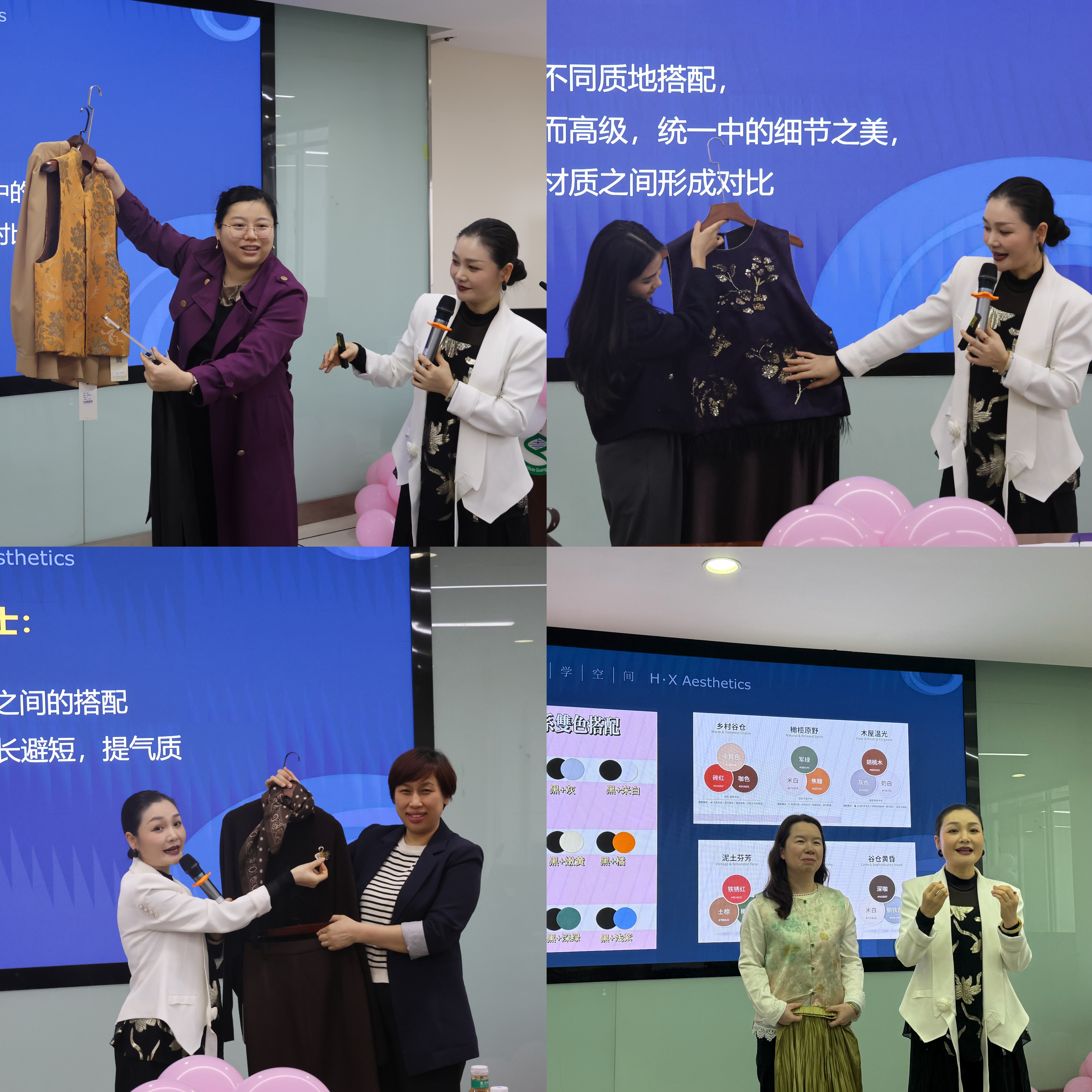本次活动特邀知名服饰美学专家陈慧心作专题分享。她围绕色彩适配原理、身形特征穿搭技巧、不同场合着装规范、妆容与服饰搭配逻辑进行系统讲解,用实用方法教会大家在简约搭配中穿出气质、穿出专业,让日常穿搭更得体、更具美感。随后的互动体验环节,老师们积极参与穿搭实操演练、美学问答互动,并就个人风格、肤色与版型选择等问题进行一对一咨询指导,在实践中收获美学干货与穿搭灵感。