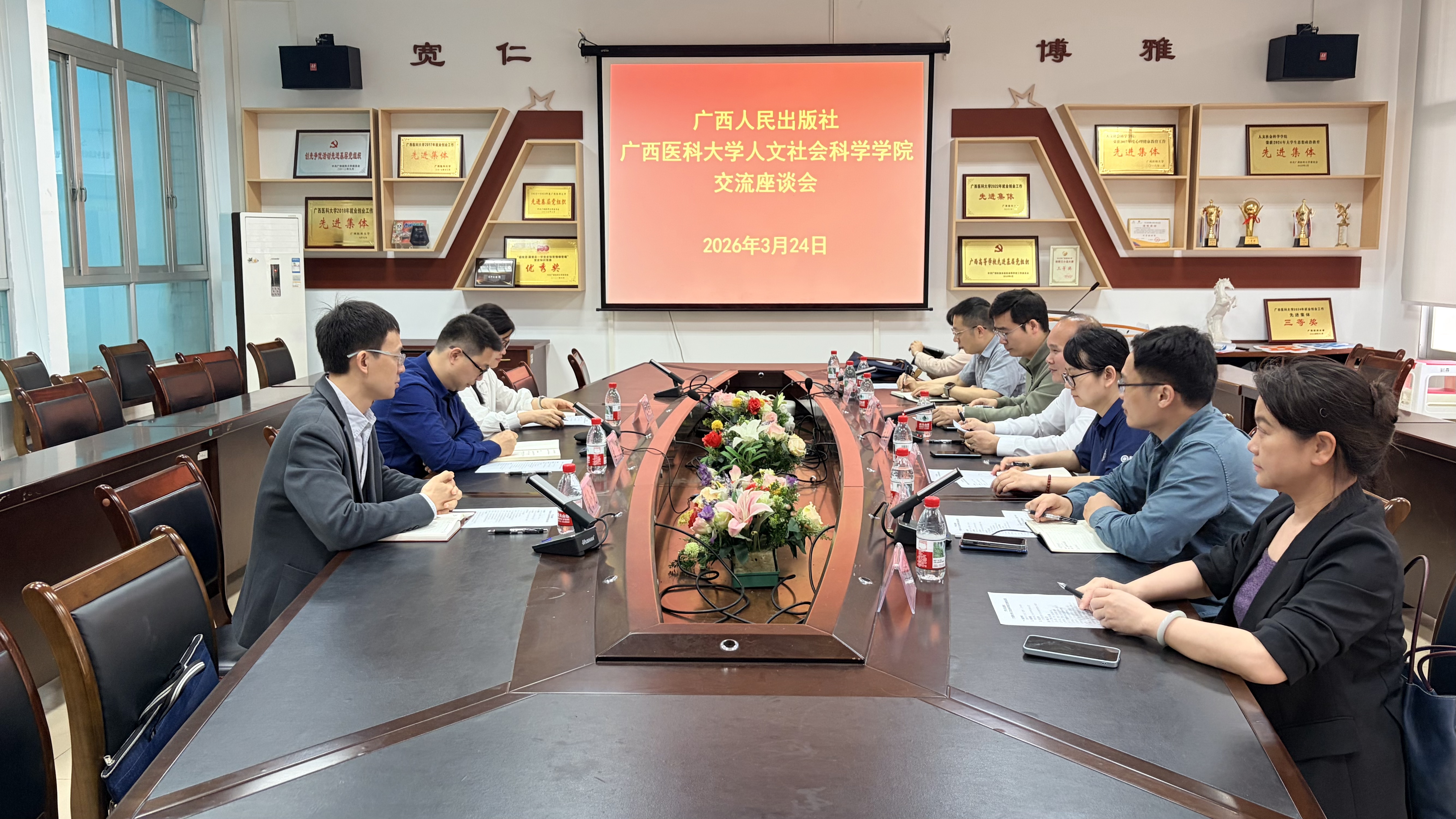 此次交流座谈会双方的面对面沟通,不仅增进了广西人民出版社与人文社会科学学院之间的相互了解,更为双方后续在学术出版、学科成果转化、人文与医学交叉研究传播等领域的潜在合作奠定了良好基础,为推动校企资源互补、协同发展迈出了重要一步。