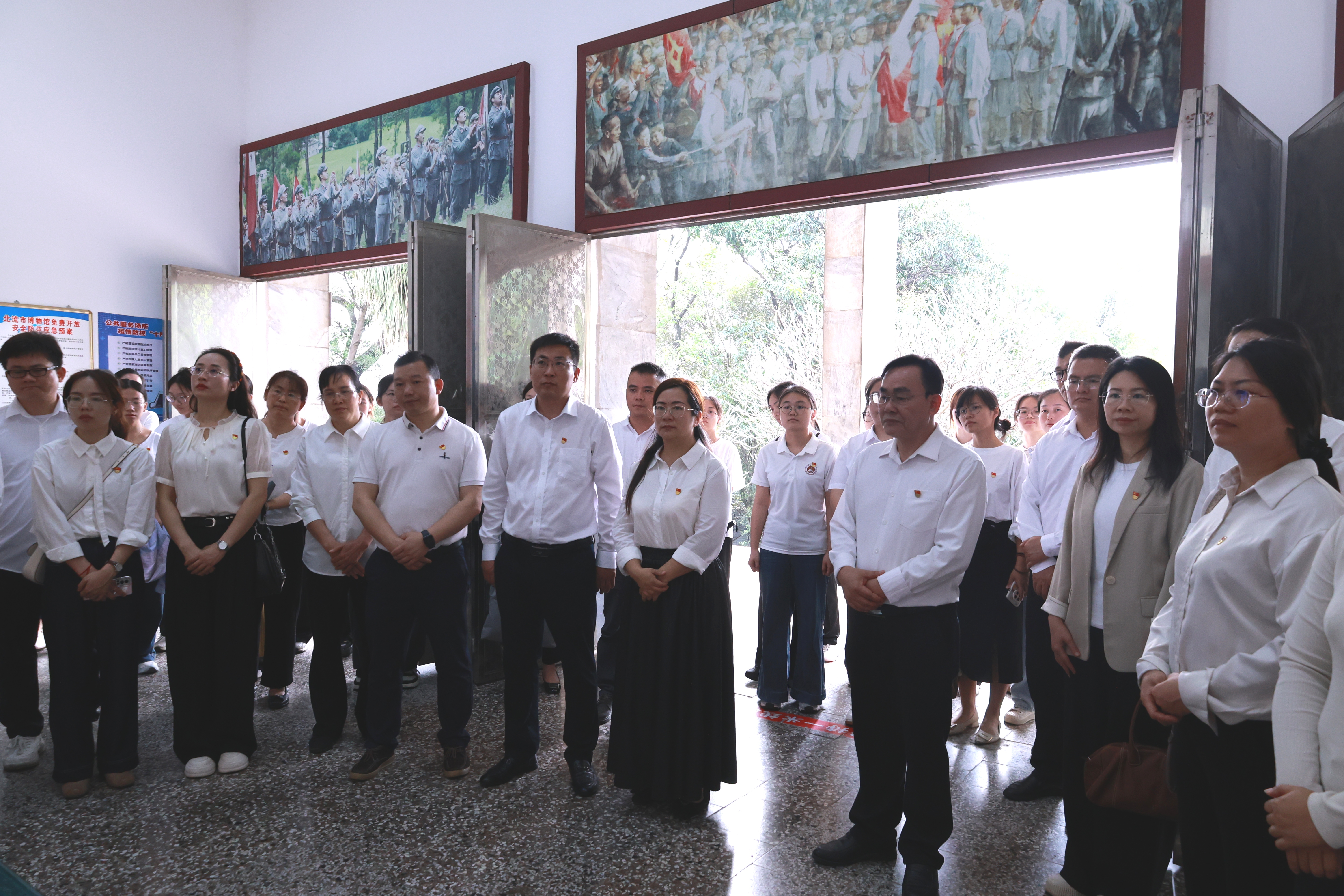 在庄严肃穆的烈士纪念雕塑前,全体人员整齐列队、神情肃穆。全体人员静默肃立,向革命先烈三鞠躬。随后,大家依次缓步绕行,向烈士献花,寄托缅怀之情。仪式结束后,全体人员步入烈士纪念馆,在讲解员的深情讲述中,认真聆听李明瑞、俞作豫烈士坚守信仰、投身革命、浴血奋战的英勇事迹,驻足观看珍贵的历史图片、文献资料与实物,重温那段烽火连天的革命岁月,深刻感悟革命先烈“功成不必在我、功成必定有我”的精神境界与历史担当。
