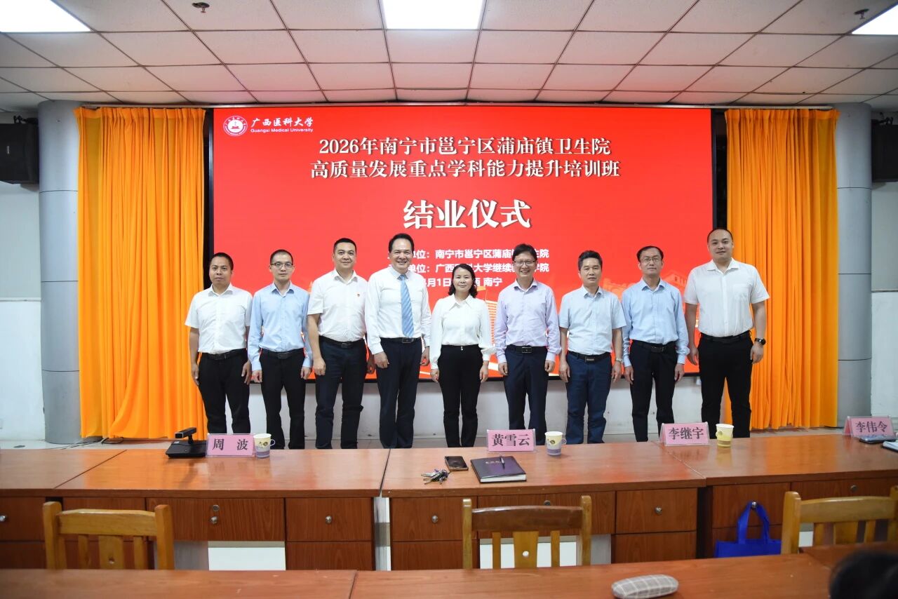 此次培训的成功举办,进一步夯实了蒲庙镇卫生院重点学科建设基础,提升了基层医疗卫生服务能力。下一步,继续教育学院将持续坚守服务基层的初心,不断健全基层医疗机构重点学科人才培养体系,深化校地协同合作,优化培训模式、丰富培训内容,持续为广西基层医疗卫生事业高质量发展注入人才动力、提供智力支持。
