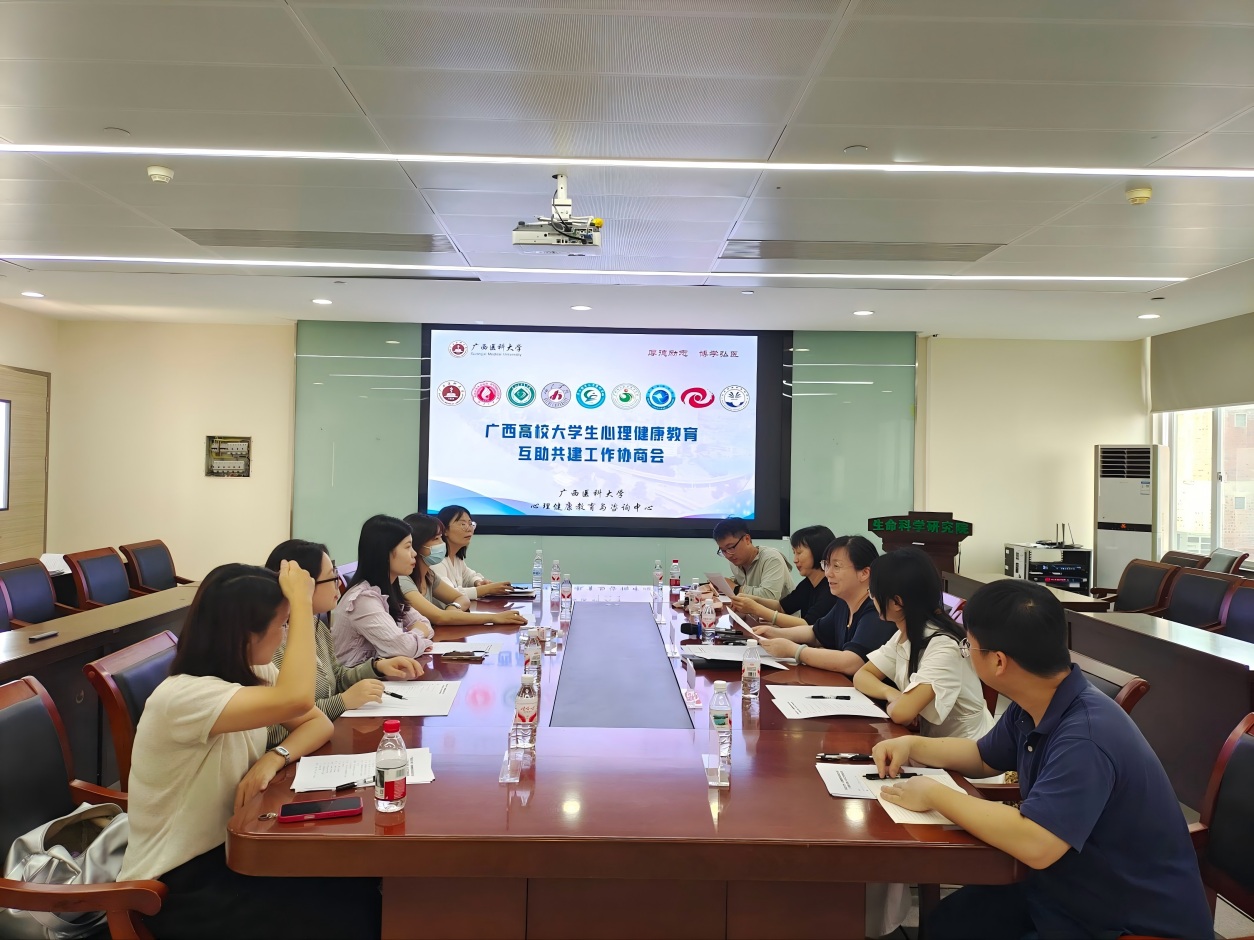 为深入贯彻落实《广西高校大学生“心理健康教育互助共建大行动”实施方案》文件精神,切实提升共建组内高校心理健康教育专兼职教师的专业素养与危机干预实战能力,4月9日-11日,我校成功召开广西高校大学生“心理健康教育互助共建大行动”(广西医科大学组)2026年工作协商会及研讨会。来自广西医科大学、广西大学、右江民族医学院、河池学院、广西体育高等专科学校、北海职业学院、广西现代职业技术学院、北海艺术设计学院、北海康养职业学院等9所共建高校的13名心理健康教育工作负责人及教师代表参会。