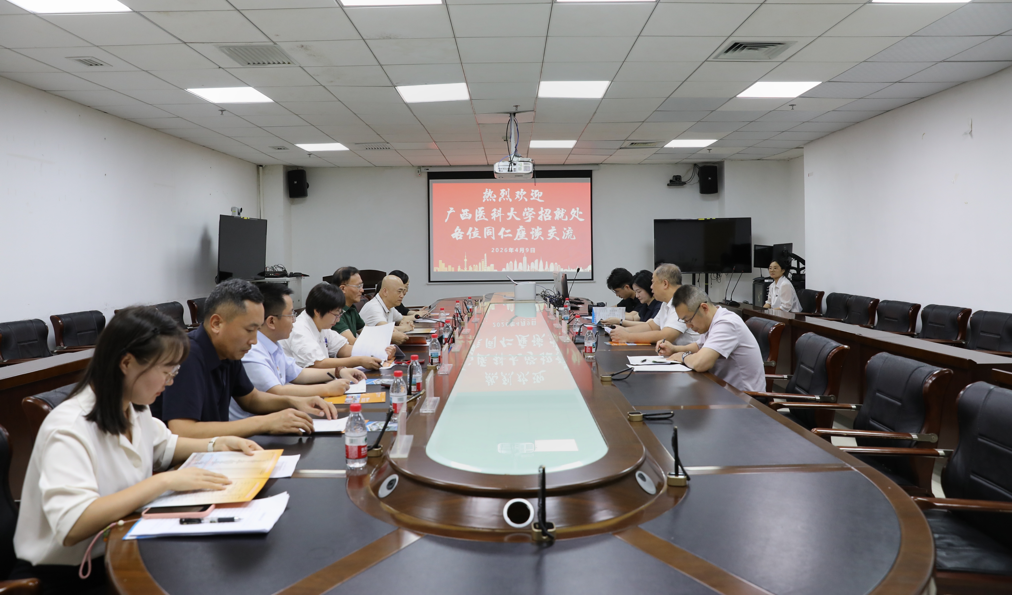 座谈会上,刘昌伟紧扣健康中国战略与自贸港建设大局,立足学校服务医疗健康事业与区域协同发展使命,强调桂琼地缘相近、联系紧密,自贸港政策红利足、医疗发展潜力大,是毕业生就业创业平台。他表示,我校此前赴琼就业规模尚待拓展,此次走访旨在打通供需堵点。招生就业处副处长黄荷重点推介学校办学特色、学科优势、人才培养及招生情况,介绍2026届毕业生、近三年就业与海南籍毕业生去向,点明桂琼区位优势及自贸港发展机遇,为毕业生赴琼就业搭建便捷通道。各单位高度认可我校人才培养质量,介绍发展规划与2026年用人计划,双方就人才招聘、供需对接、实践教学等深入交流。