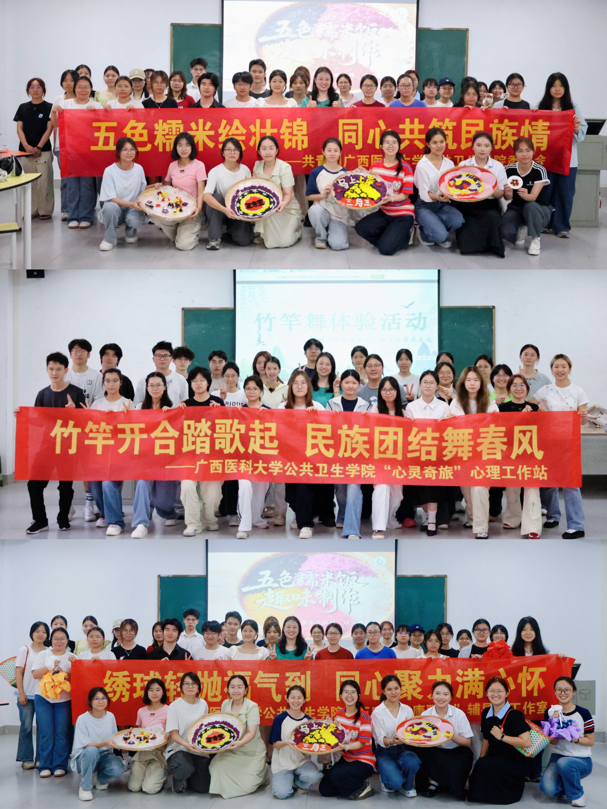 为传承中华优秀传统文化,铸牢中华民族共同体意识,2026年4月10日至13日,公共卫生学院于校本部及武鸣校区举办“广西三月三”系列民俗体验活动。活动紧扣“三月三壮韵牵情脉,筑民族同心向未来”主题,两校区联动开展多元体验,让民族团结之根深植青年心田。