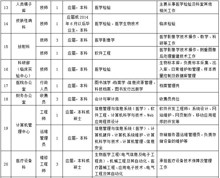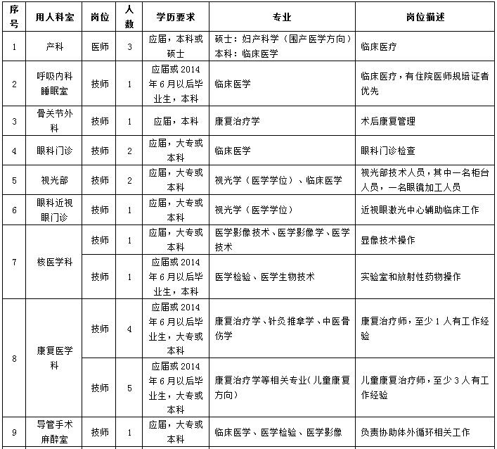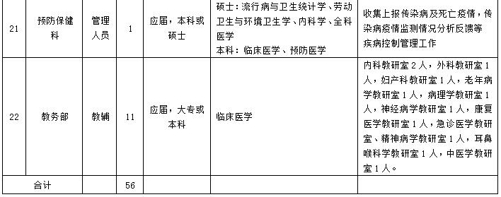 根据我院工作需要,现招聘大专及以上毕业生56名,具体详情如下: