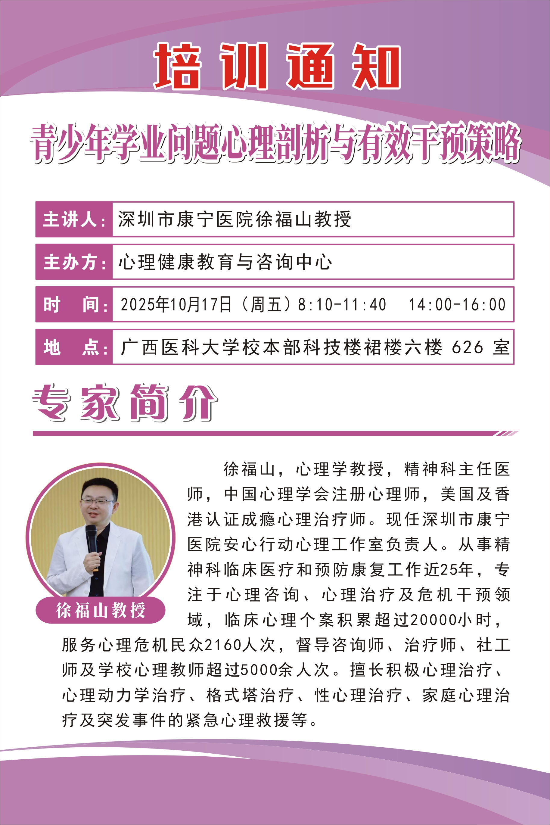主讲人:深圳市康宁医院 徐福山教授
