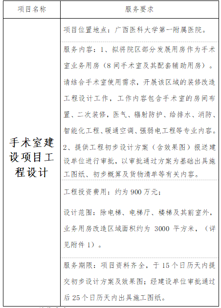 广西医科大学第一附属医院手术室建设项目工程设计比选公告