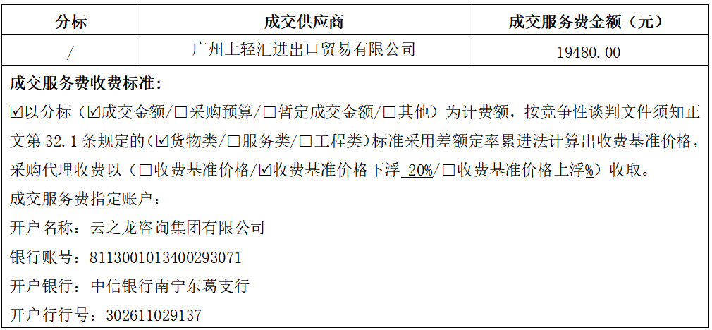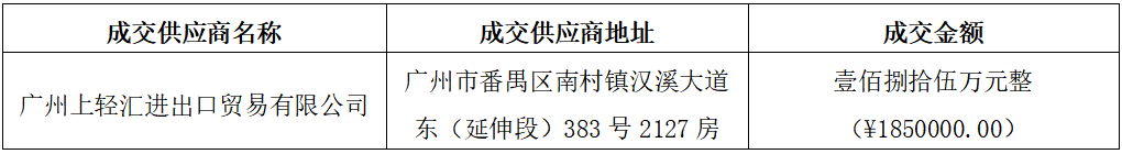 八、其他补充事宜:广州上轻汇进出口贸易有限公司评审报价为1480000.00元