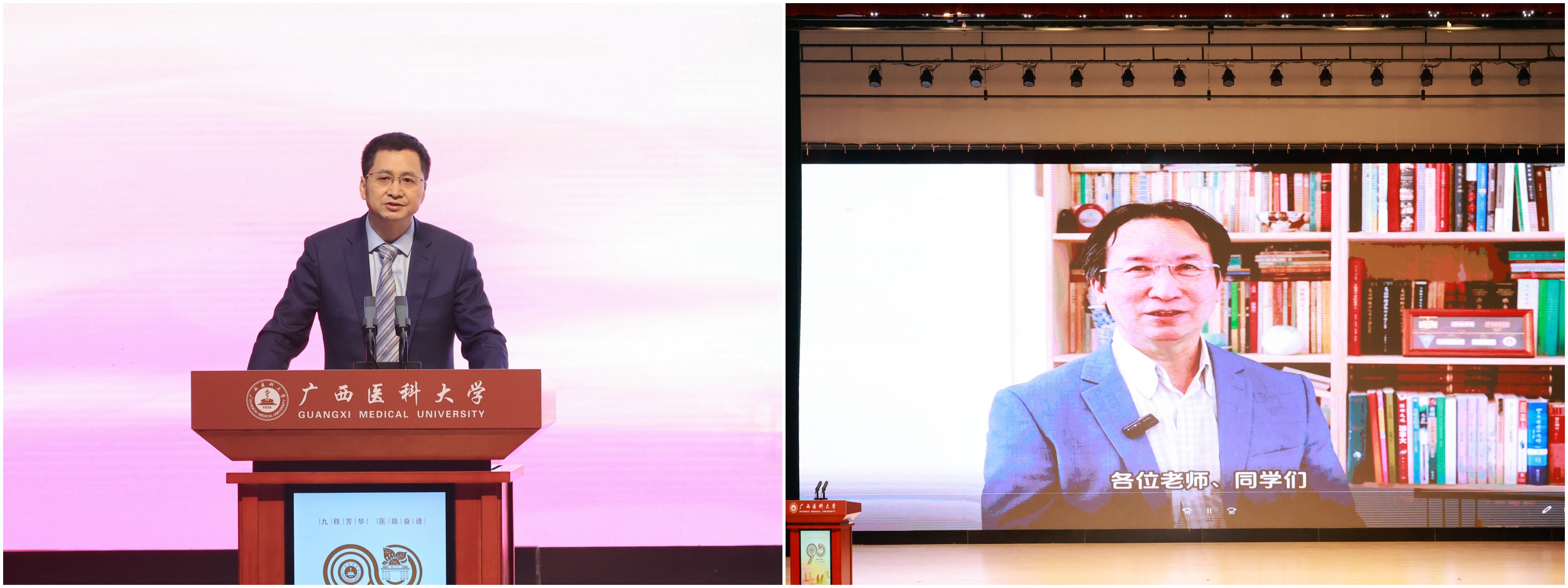 曾志羽校长指出,学校取得的成就是各级党委政府、社会各界和海内外校友长期关心、支持的结果,更是一代又一代医大人发奋图强、同舟共济、笃行实干、赓续前行的结晶。学校将以此为契机,通过多方联动,解放思想、创新求变,携手同行、互促互进,达到交相辉映、彼此成就,共同书写广西医科大学高质量发展的未来新篇章,为构建高质量高等教育体系、新时代壮美广西建设、健康中国建设、中华民族伟大复兴梦想作出新的更大贡献!