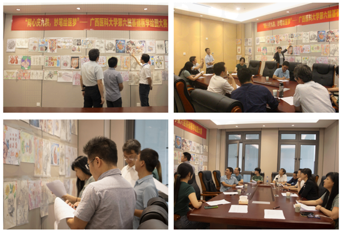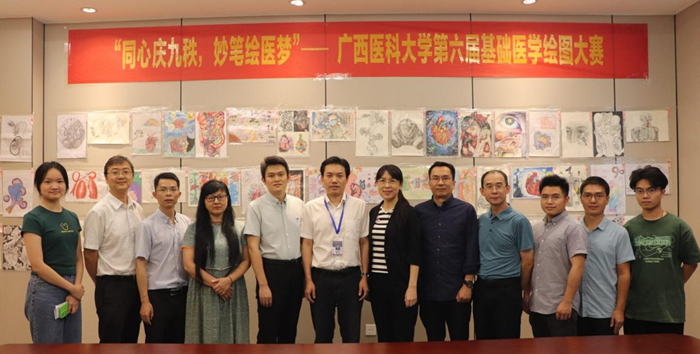九秩芳华,医路奋进。医大学子们积极参与广西医科大学第六届基础医学绘图大赛,同心庆九秩,妙笔绘医梦。此次比赛于2024年1月启动,共收到来自校本部、武鸣校区、玉林校区投稿的186幅作品,经过作品初评、作品展示和网络投票、现场复评三个阶段,大赛在5月18日圆满落下帷幕。基础医学院党委书记谭国鹤、党委副书记李文奇、副院长罗彬出席本次大赛复评现场。