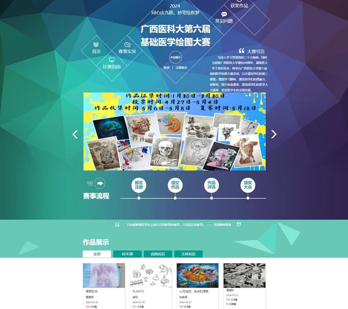 此次绘图大赛的举办,将同学们的知识与实践紧密相连,提高了同学们的医学人文素养,同时也促进了校园文化艺术的繁荣发展。九秩春秋,广西医科大学继往开来,守正创新。幅幅妙笔画,莘莘学子心,参赛选手表示将以青春理想为笔、专业知识为墨,图绘医梦,献礼医大,赓续奋进,再谱华章!