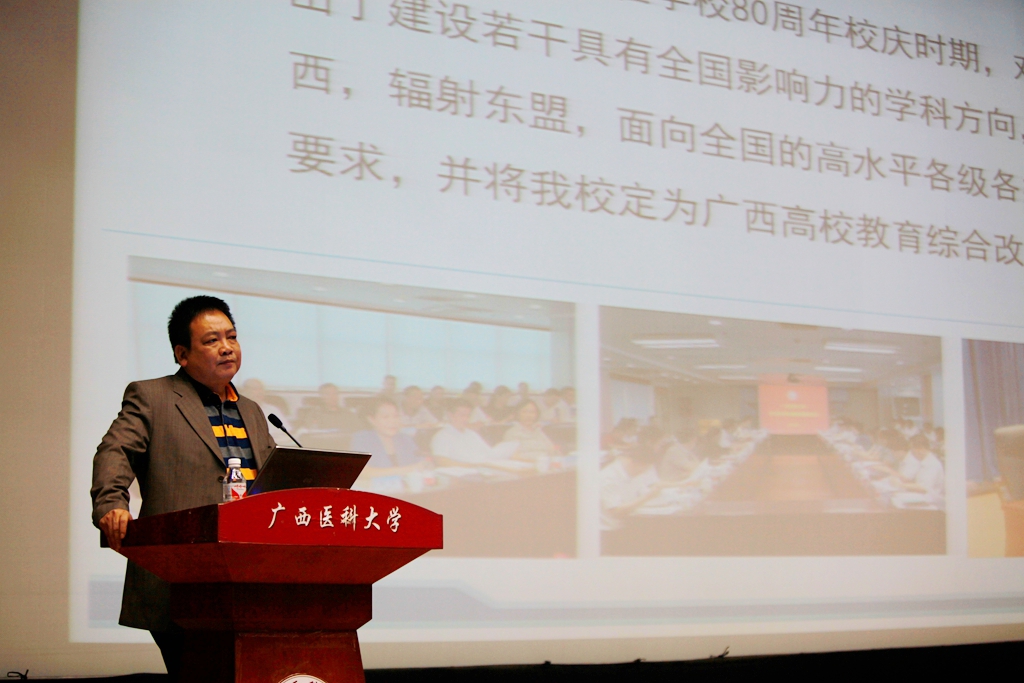 与会代表首先听取学校关于合作筹建广西医科大学平果校区、玉林校区的工作报告。赵劲民校长从拓展办学空间的紧迫性和重要性,玉林校区、平果校区项目的基本情况,选择玉林校区、平果校区项目的可行性分析,玉林校区、至关紧要校区项目协议的风险评估分析等几方面展开,通过一系列数据、图片等第一手资料的详细比对和深入分析,得出“合作办学是经过深入调研、研究讨论后形成的共识,是目前摆在学校面前的重要机会”这一重要结论,他号召与会代表从学校发展全局的角度,认真审阅玉林校区、平果校区合作办学协议,提出宝贵的意见建议并提交本次大会,共同为学校发展大计建言献策,实现医大发展梦,为百年医大献礼。