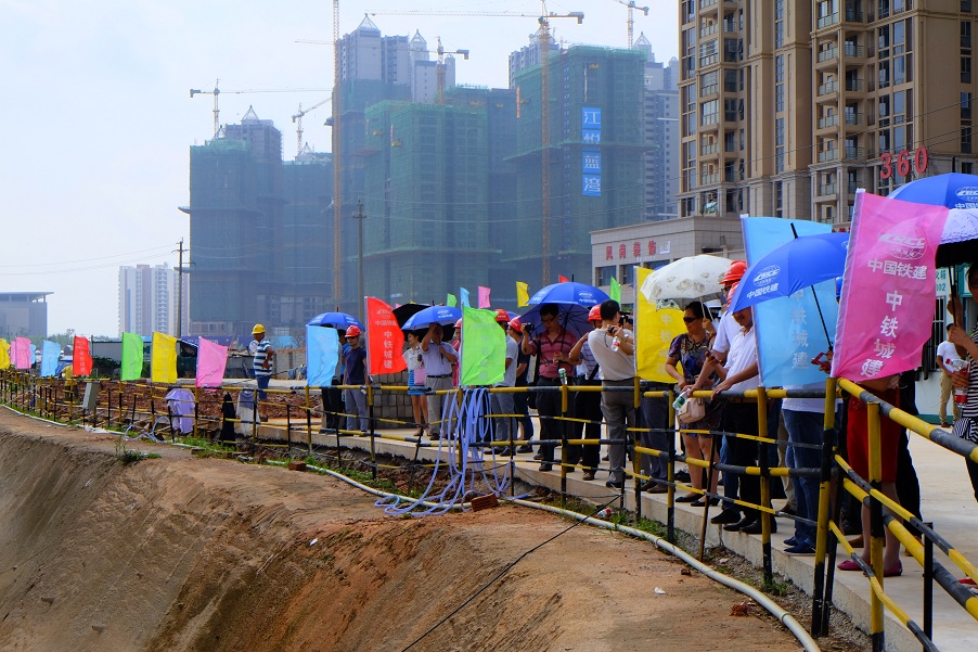 6月15日上午,在广西医科大学蟠龙住宅小区7#-地南工程施工现场进行了主体工程试桩工作。中铁城建集团第二工程公司黄伟强总经理、罗开导主席、广西宏基监理公司唐第云总监、设计单位中国建材国际工程集团有限公司刘啓刚总工程师、南宁市天鑫泽房地产开发有限责任公司股东代表、监事会成员及全体公司员工参与并见证了这一重要时刻。