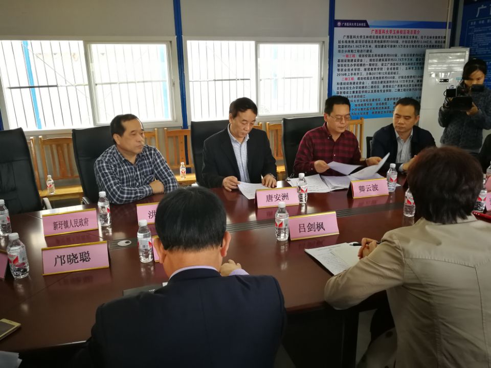 14日上午,双方在施工现场进行了座谈。唐安洲副书记与玉林市政府吕剑枫副市长听取了玉林卫计委、北流市政府、玉东区政府、新圩镇政府、德善公司及玉林卫校等领导对项目进展、存在问题和工作计划的汇报。